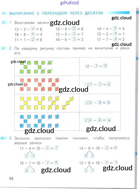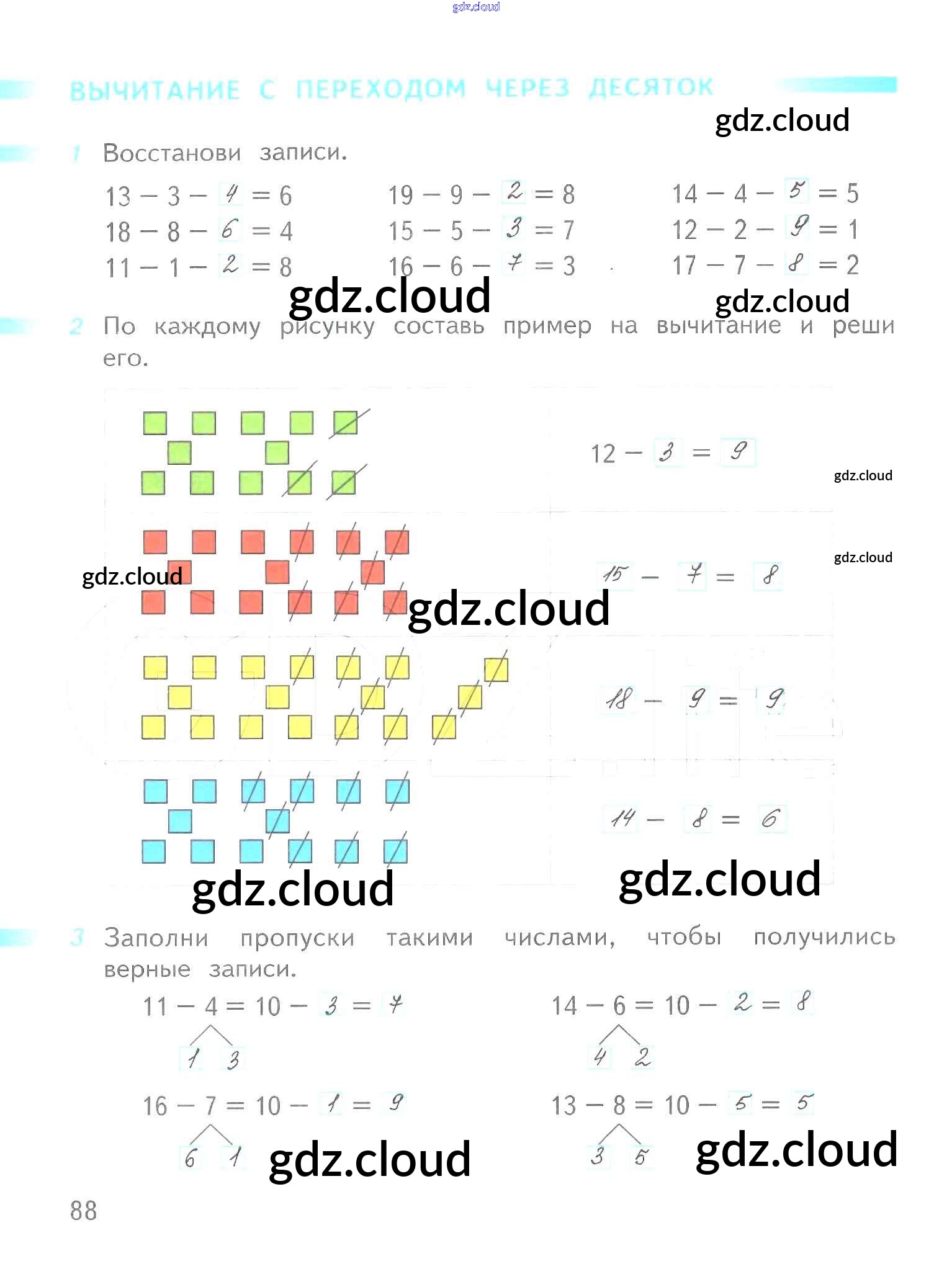 Ответ на задание 88 Рабочая тетрадь Математика за 1 (первый) класс Дорофеев, Миракова, Бука Перспектива 2016 Часть 1, 2