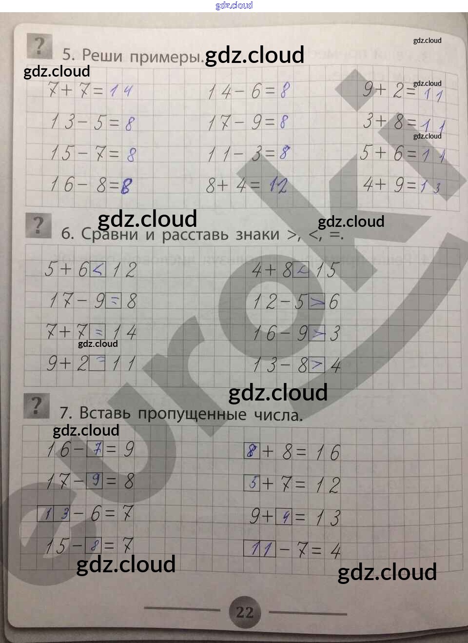 Ответ на задание стр.22 Тренажёр Математика за 1 (первый) класс Губка 2017 ФГОС онлайн и без номера телефона.