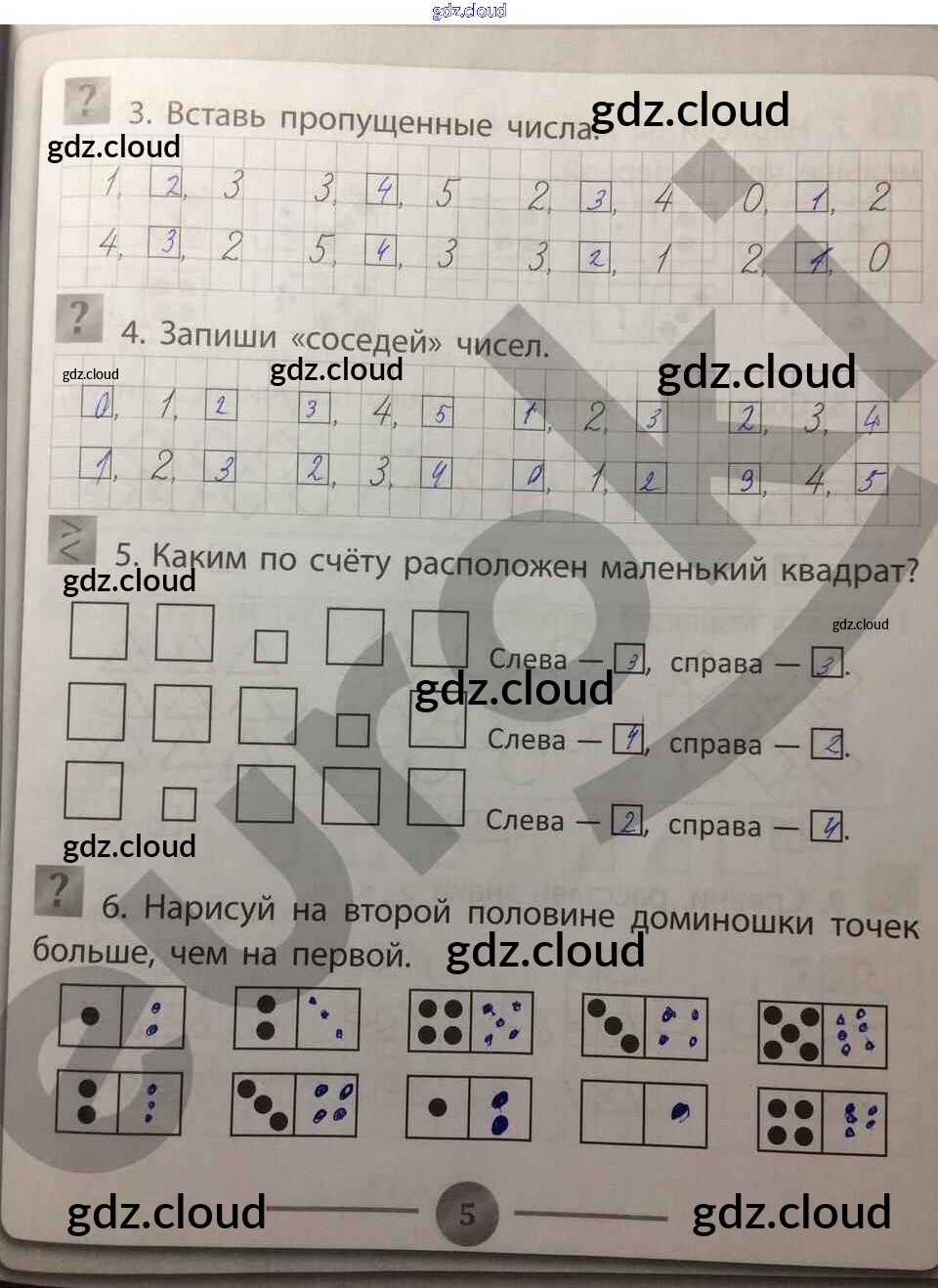 Ответ на задание стр.5 Тренажёр Математика за 1 (первый) класс Губка 2017 ФГОС онлайн и без номера телефона.