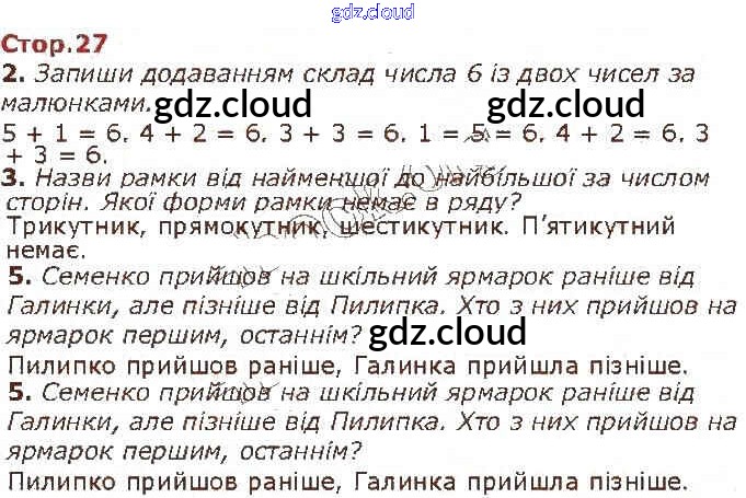 Ответ на задание 27 Учебник Математика за 1 (первый) класс Лишенко, Тарнавська 2018