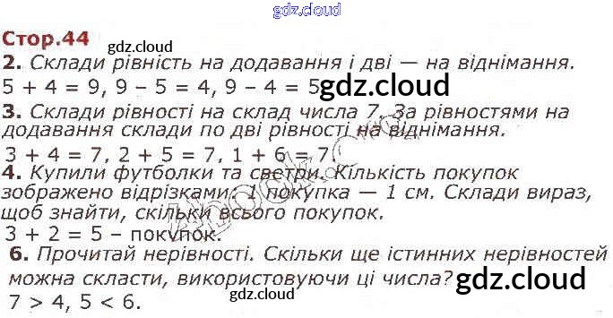 Ответ на задание 44 Учебник Математика за 1 (первый) класс Лишенко, Тарнавська 2018