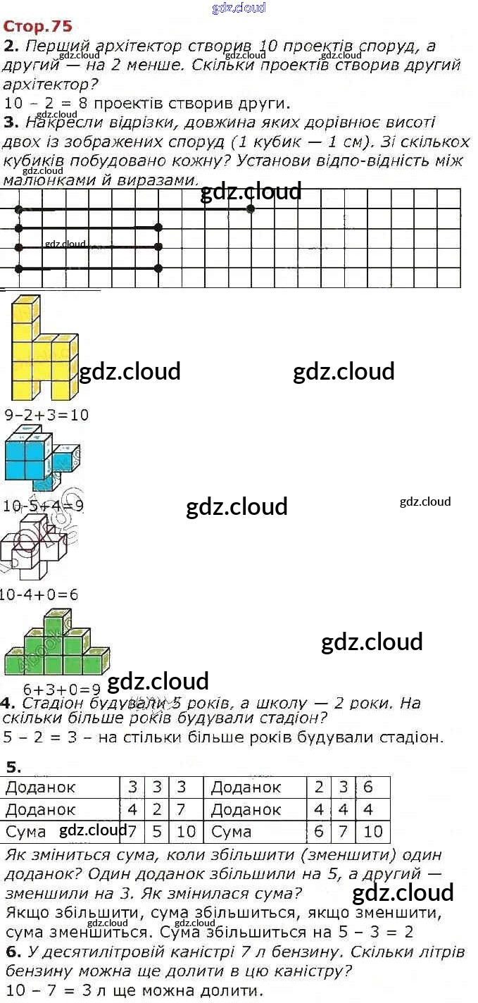 Ответ на задание 75 Учебник Математика за 1 (первый) класс Лишенко, Тарнавська 2018