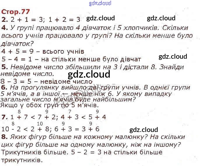 Ответ на задание 77 Учебник Математика за 1 (первый) класс Лишенко, Тарнавська 2018