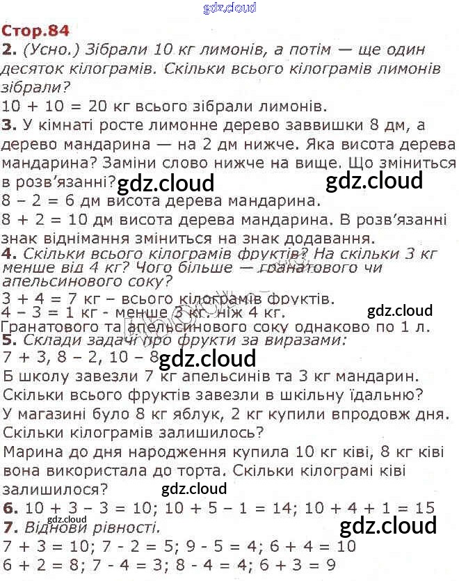Ответ на задание 84 Учебник Математика за 1 (первый) класс Лишенко, Тарнавська 2018 онлайн и без номера телефона.