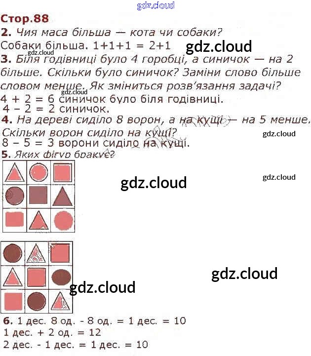 Ответ на задание 88 Учебник Математика за 1 (первый) класс Лишенко, Тарнавська 2018 онлайн и без номера телефона.