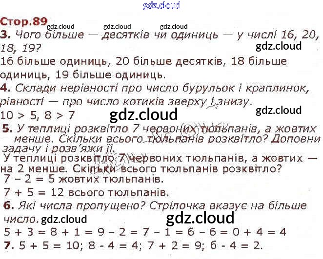 Ответ на задание 89 Учебник Математика за 1 (первый) класс Лишенко, Тарнавська 2018 онлайн и без номера телефона.
