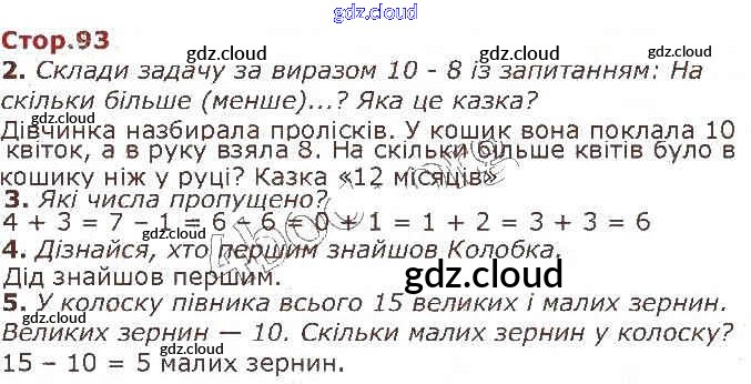Ответ на задание 93 Учебник Математика за 1 (первый) класс Лишенко, Тарнавська 2018 онлайн и без номера телефона.