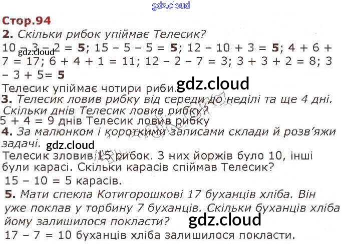 Ответ на задание 94 Учебник Математика за 1 (первый) класс Лишенко, Тарнавська 2018 онлайн и без номера телефона.