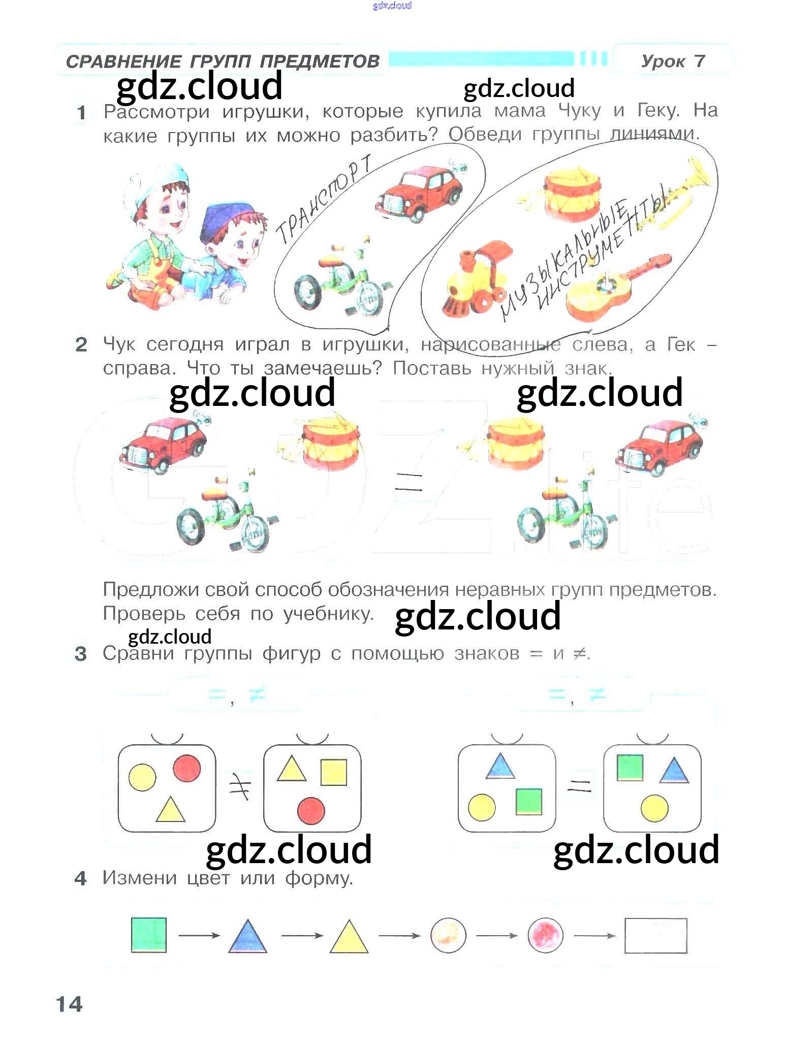 Ответ на задание 14 Рабочая тетрадь Математика за 1 (первый) класс Петерсон Учусь учиться 2016 Часть 1, 2, 3