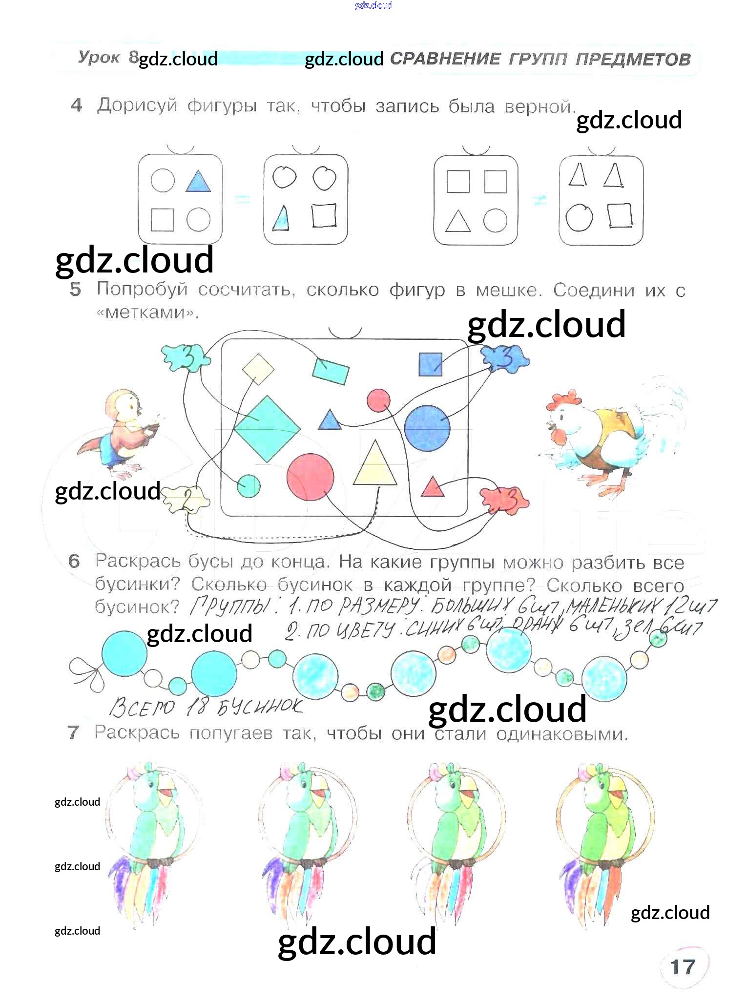 Ответ на задание 17 Рабочая тетрадь Математика за 1 (первый) класс Петерсон Учусь учиться 2016 Часть 1, 2, 3