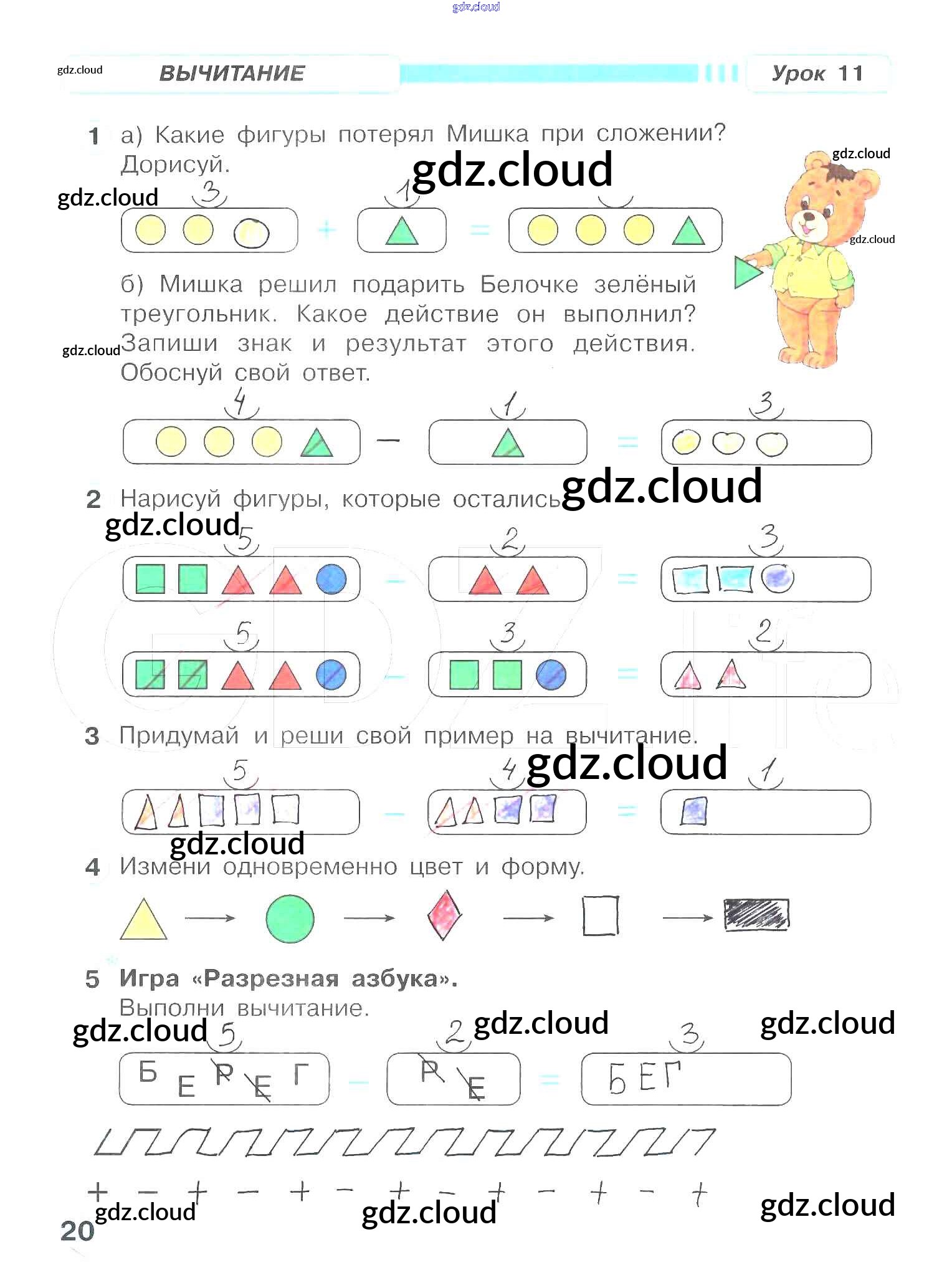 Ответ на задание 20 Рабочая тетрадь Математика за 1 (первый) класс Петерсон Учусь учиться 2016 Часть 1, 2, 3