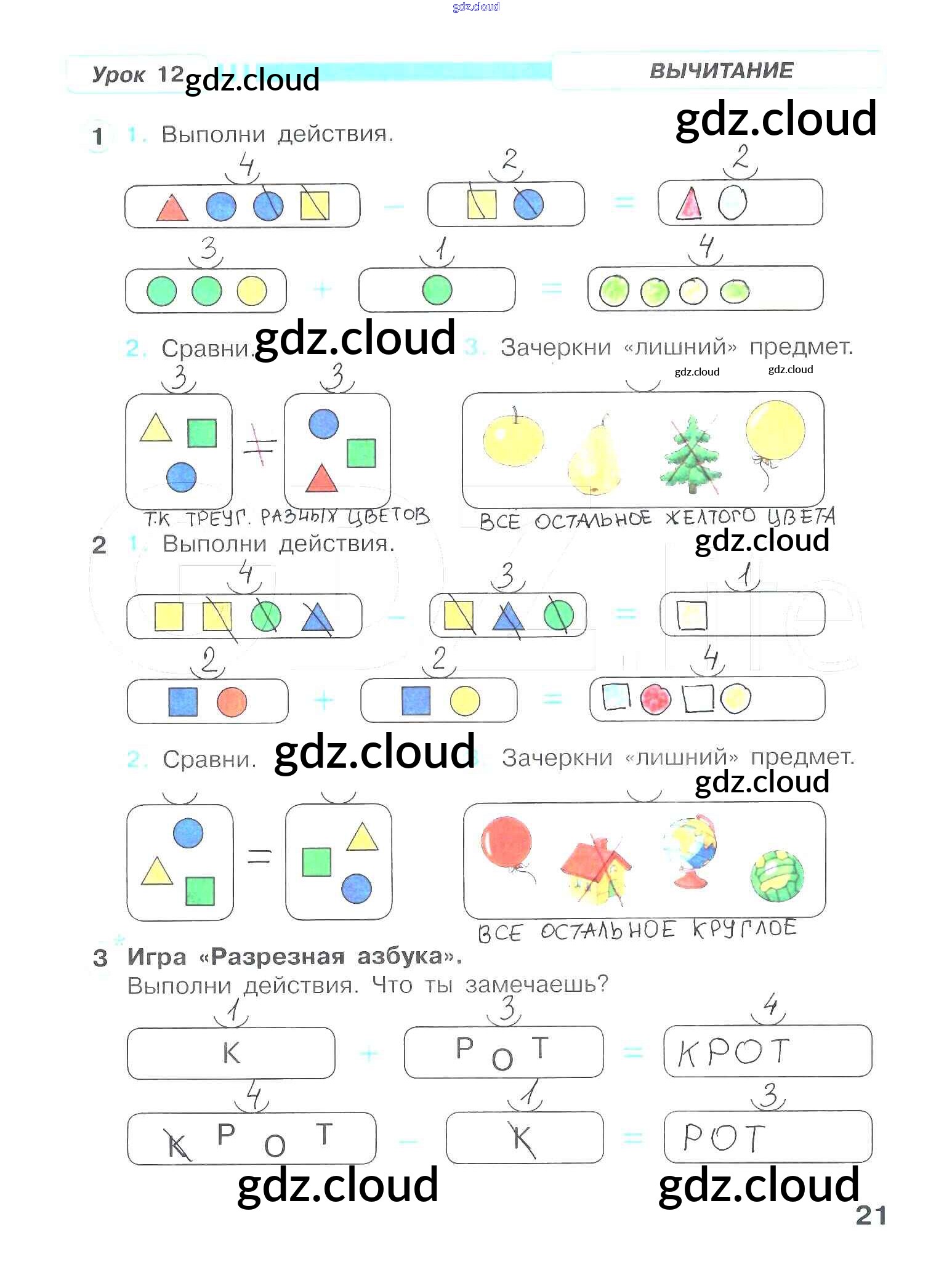 Ответ на задание 21 Рабочая тетрадь Математика за 1 (первый) класс Петерсон Учусь учиться 2016 Часть 1, 2, 3