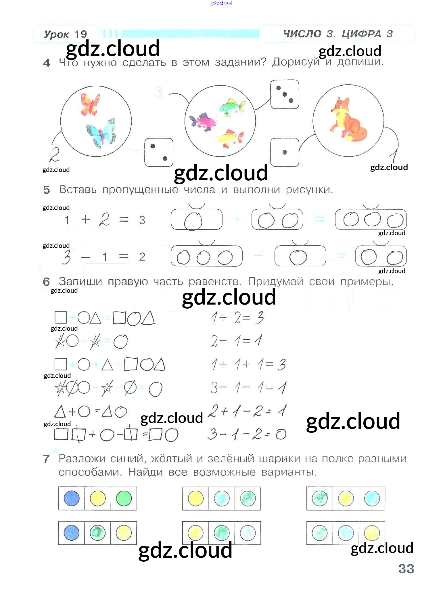Ответ на задание 33 Рабочая тетрадь Математика за 1 (первый) класс Петерсон Учусь учиться 2016 Часть 1, 2, 3