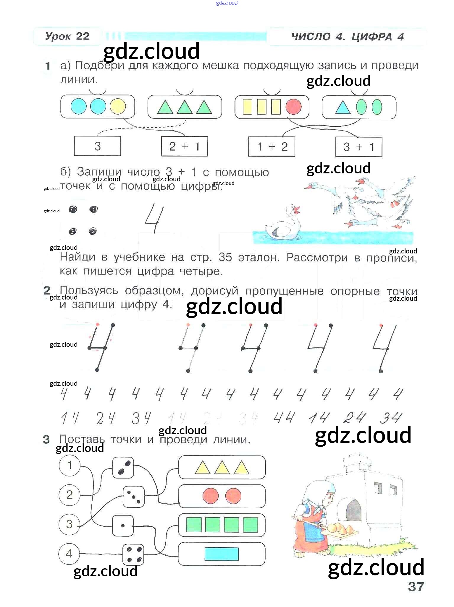 Ответ на задание 37 Рабочая тетрадь Математика за 1 (первый) класс Петерсон Учусь учиться 2016 Часть 1, 2, 3