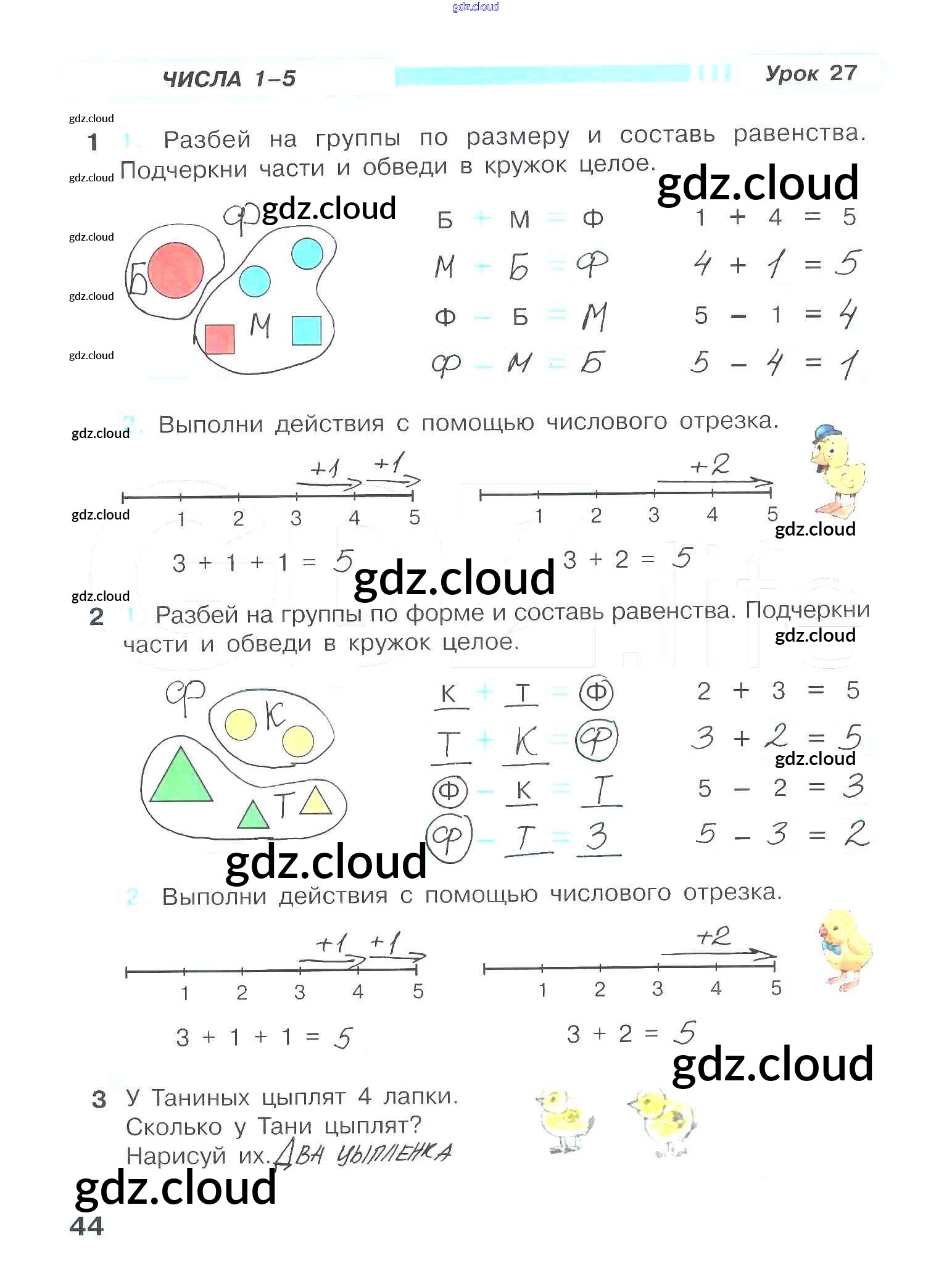 Ответ на задание 44 Рабочая тетрадь Математика за 1 (первый) класс Петерсон Учусь учиться 2016 Часть 1, 2, 3