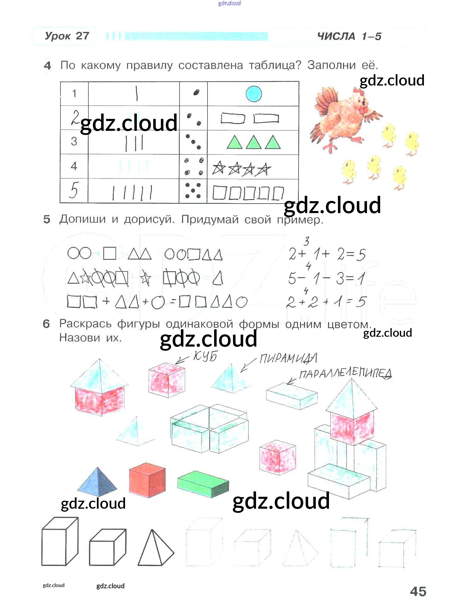 Ответ на задание 45 Рабочая тетрадь Математика за 1 (первый) класс Петерсон Учусь учиться 2016 Часть 1, 2, 3
