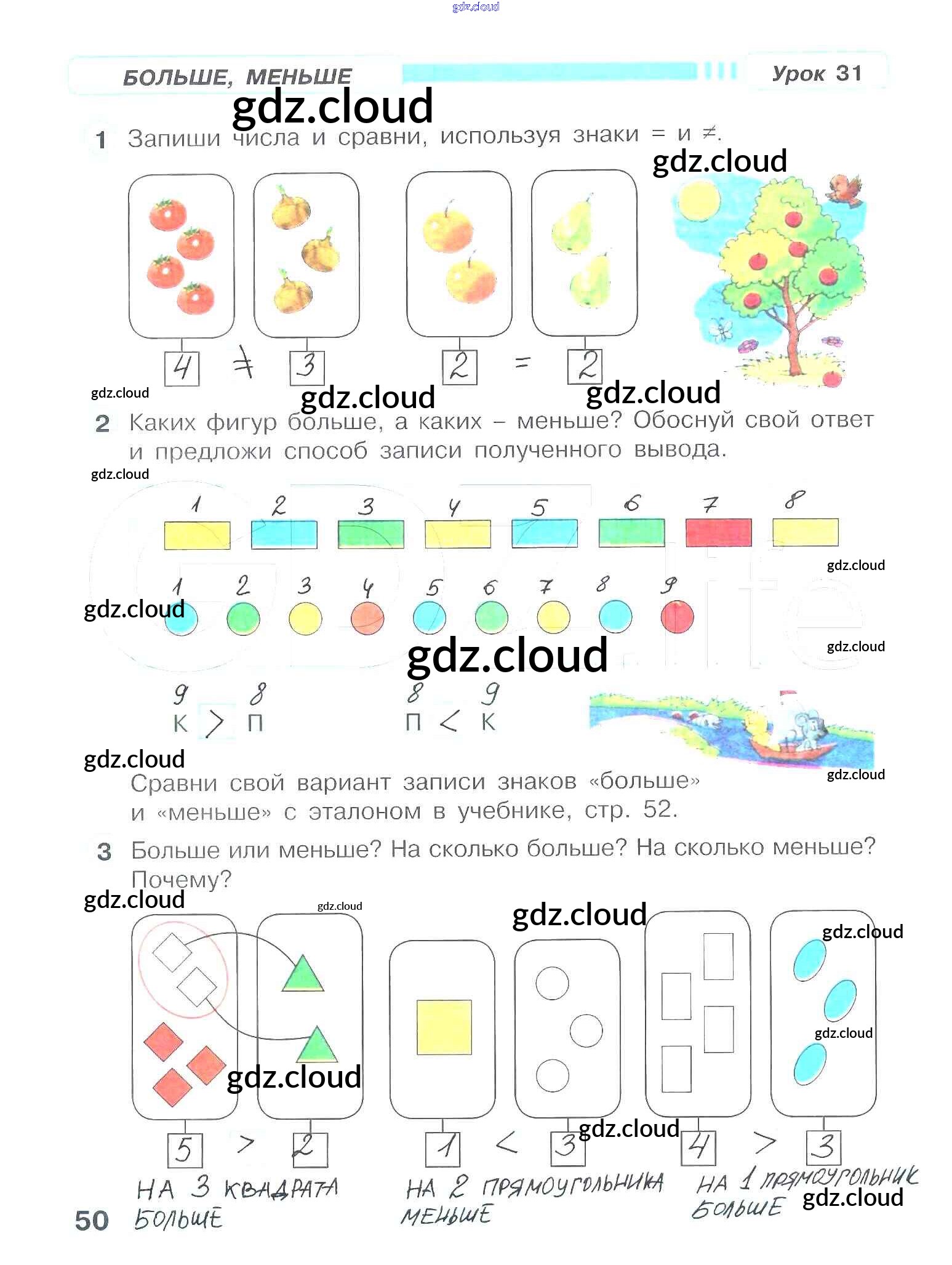 Ответ на задание 50 Рабочая тетрадь Математика за 1 (первый) класс Петерсон Учусь учиться 2016 Часть 1, 2, 3
