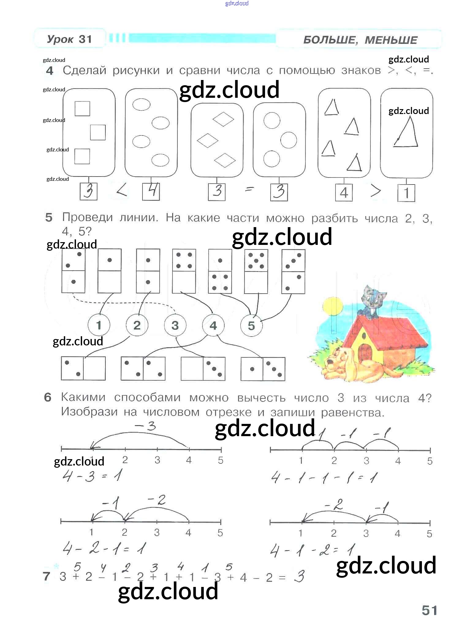 Ответ на задание 51 Рабочая тетрадь Математика за 1 (первый) класс Петерсон Учусь учиться 2016 Часть 1, 2, 3