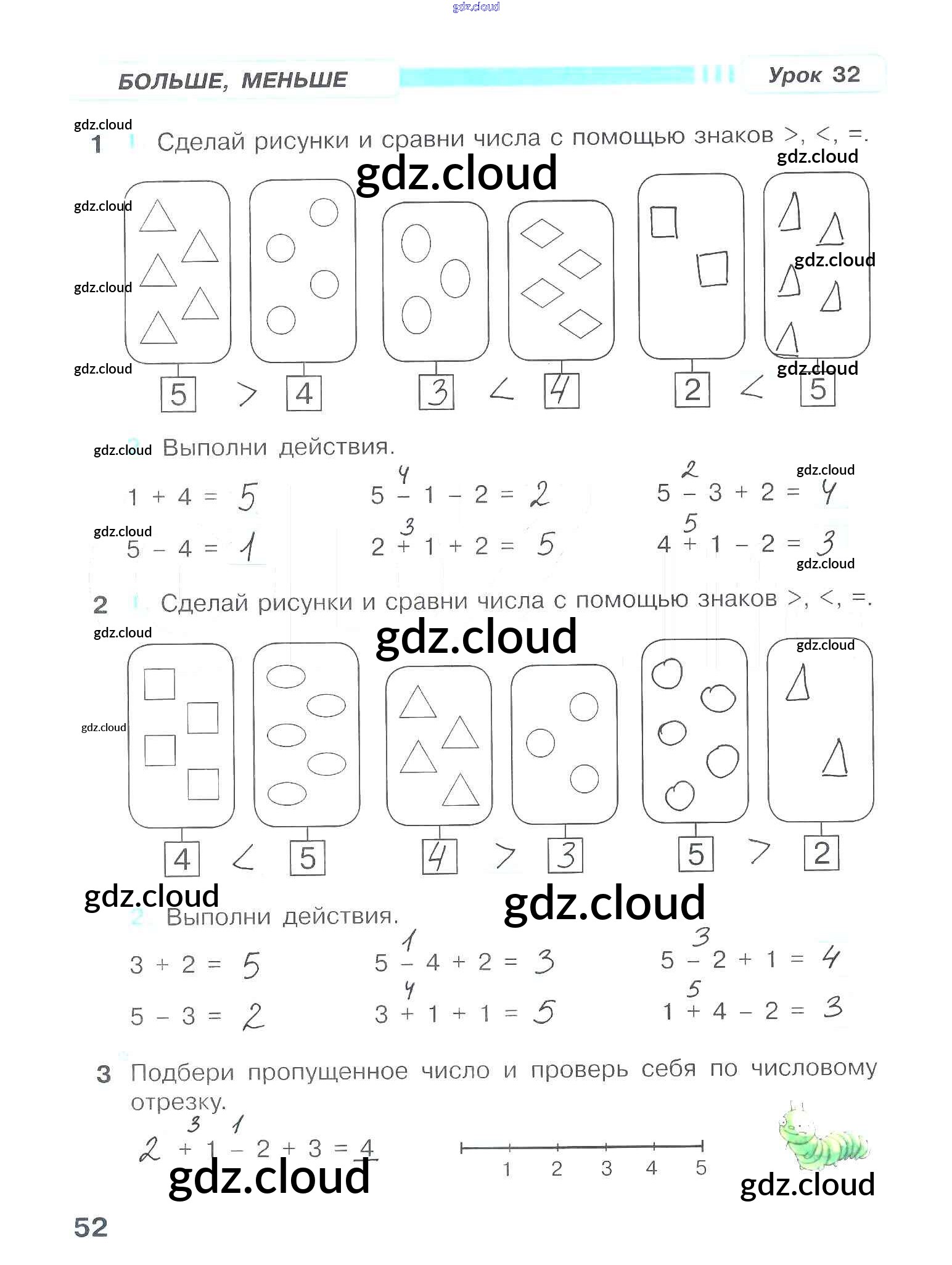 Ответ на задание 52 Рабочая тетрадь Математика за 1 (первый) класс Петерсон Учусь учиться 2016 Часть 1, 2, 3