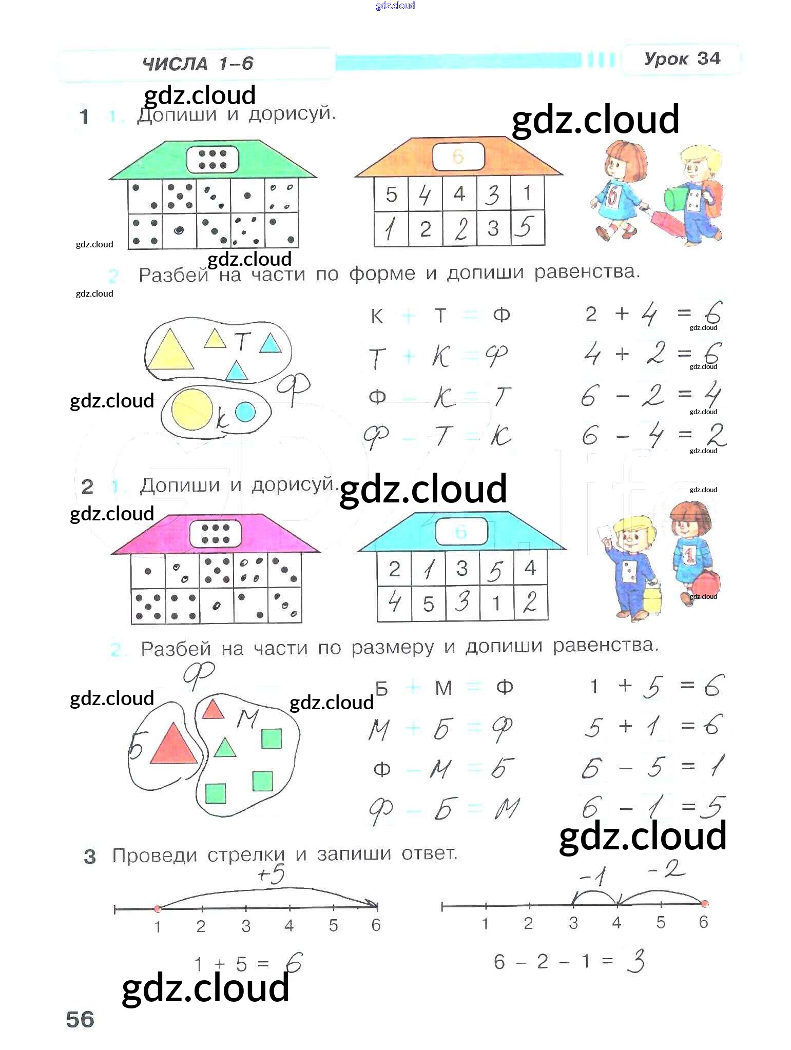 Ответ на задание 56 Рабочая тетрадь Математика за 1 (первый) класс Петерсон Учусь учиться 2016 Часть 1, 2, 3