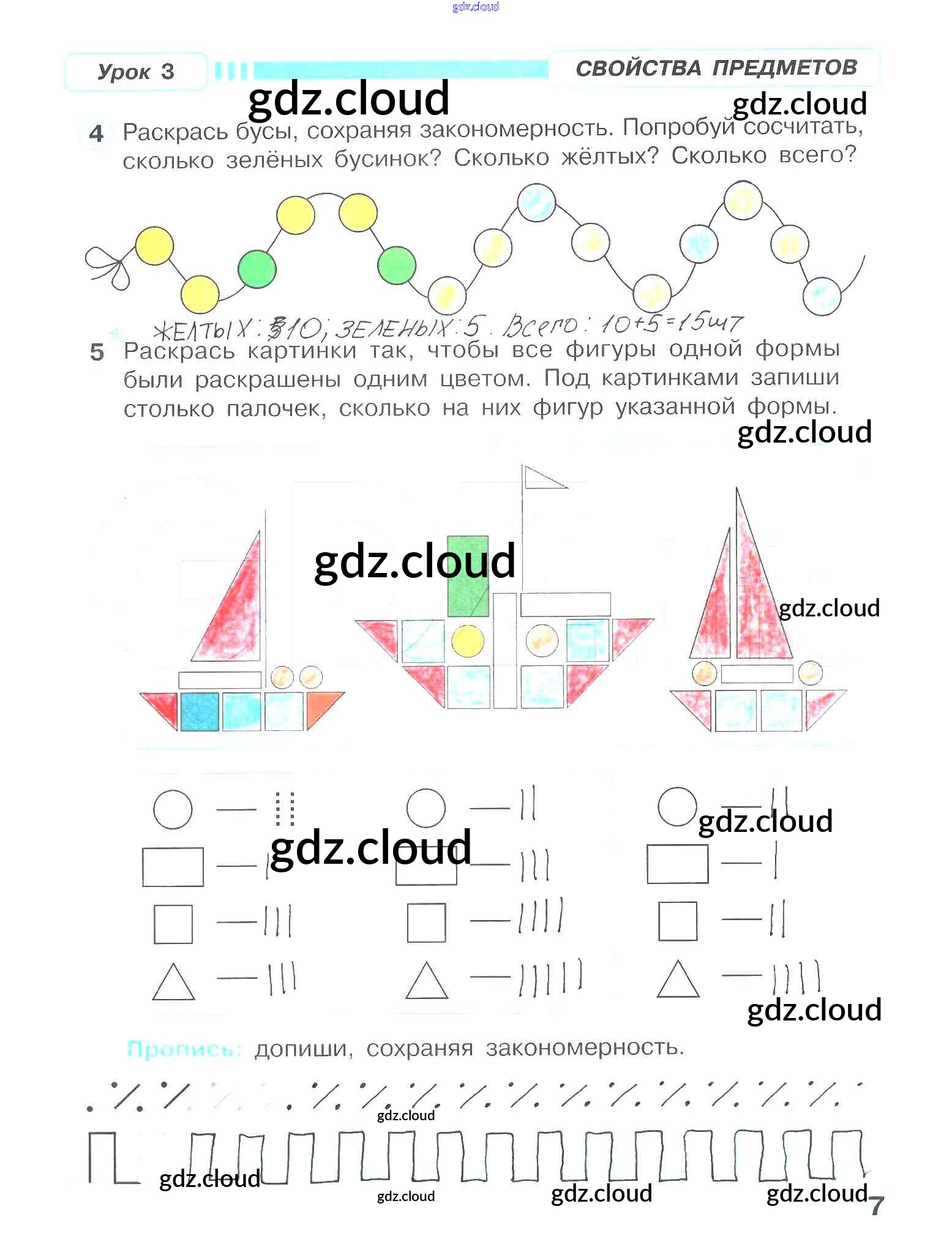 Ответ на задание 7 Рабочая тетрадь Математика за 1 (первый) класс Петерсон Учусь учиться 2016 Часть 1, 2, 3