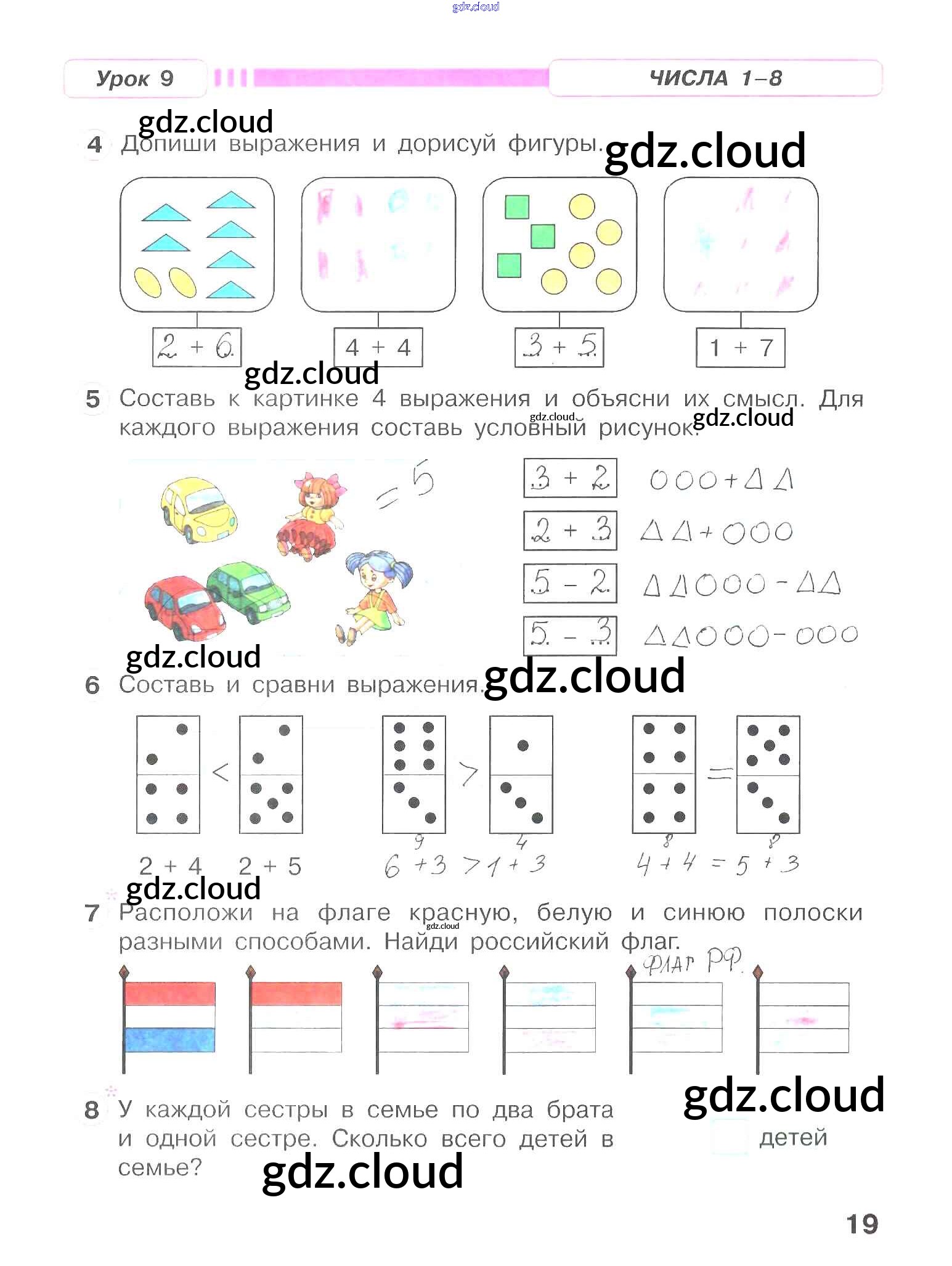 Ответ на задание 19 Рабочая тетрадь Математика за 1 (первый) класс Петерсон Учусь учиться 2016 Часть 1, 2, 3