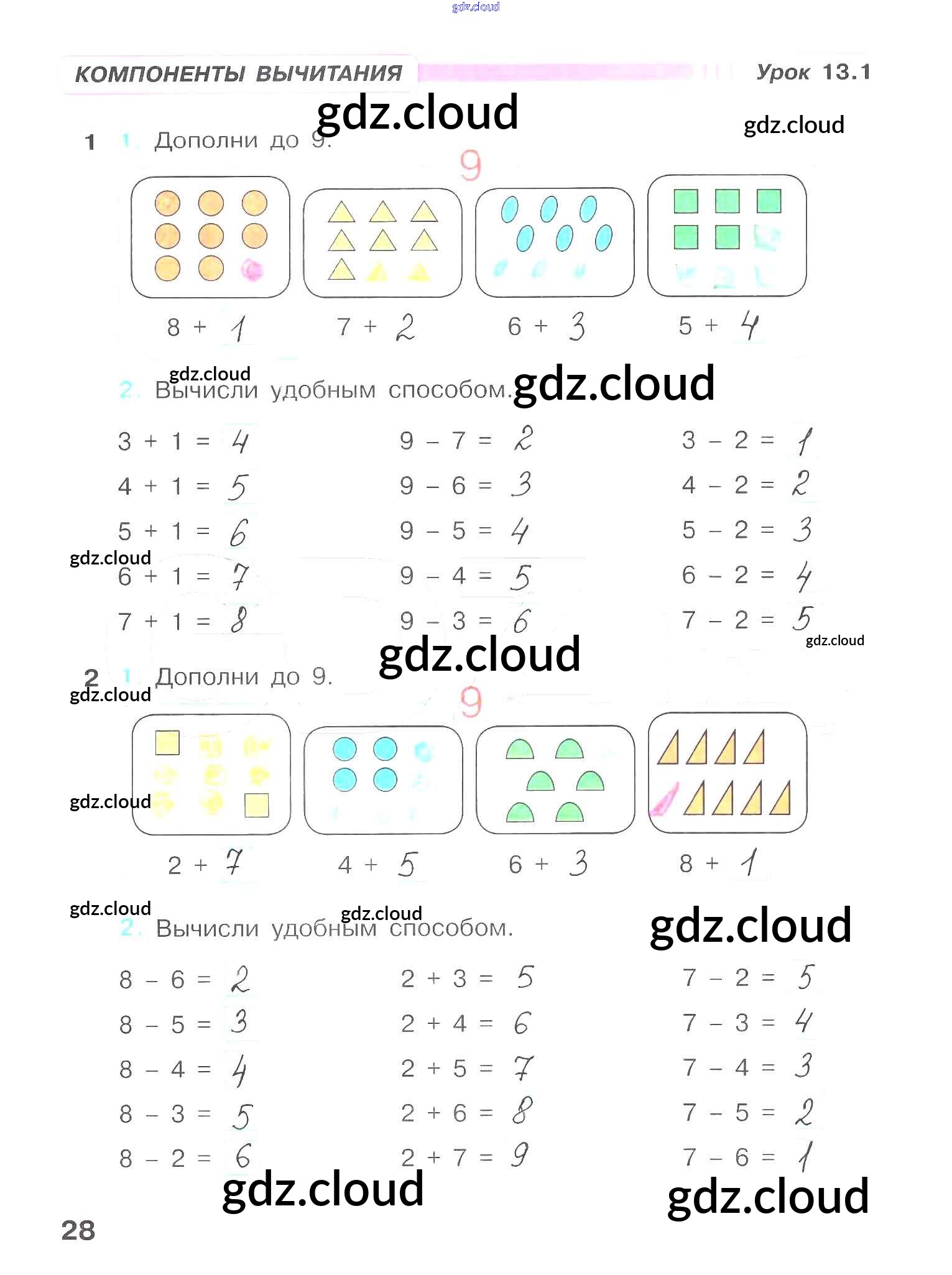 Ответ на задание 28 Рабочая тетрадь Математика за 1 (первый) класс Петерсон Учусь учиться 2016 Часть 1, 2, 3