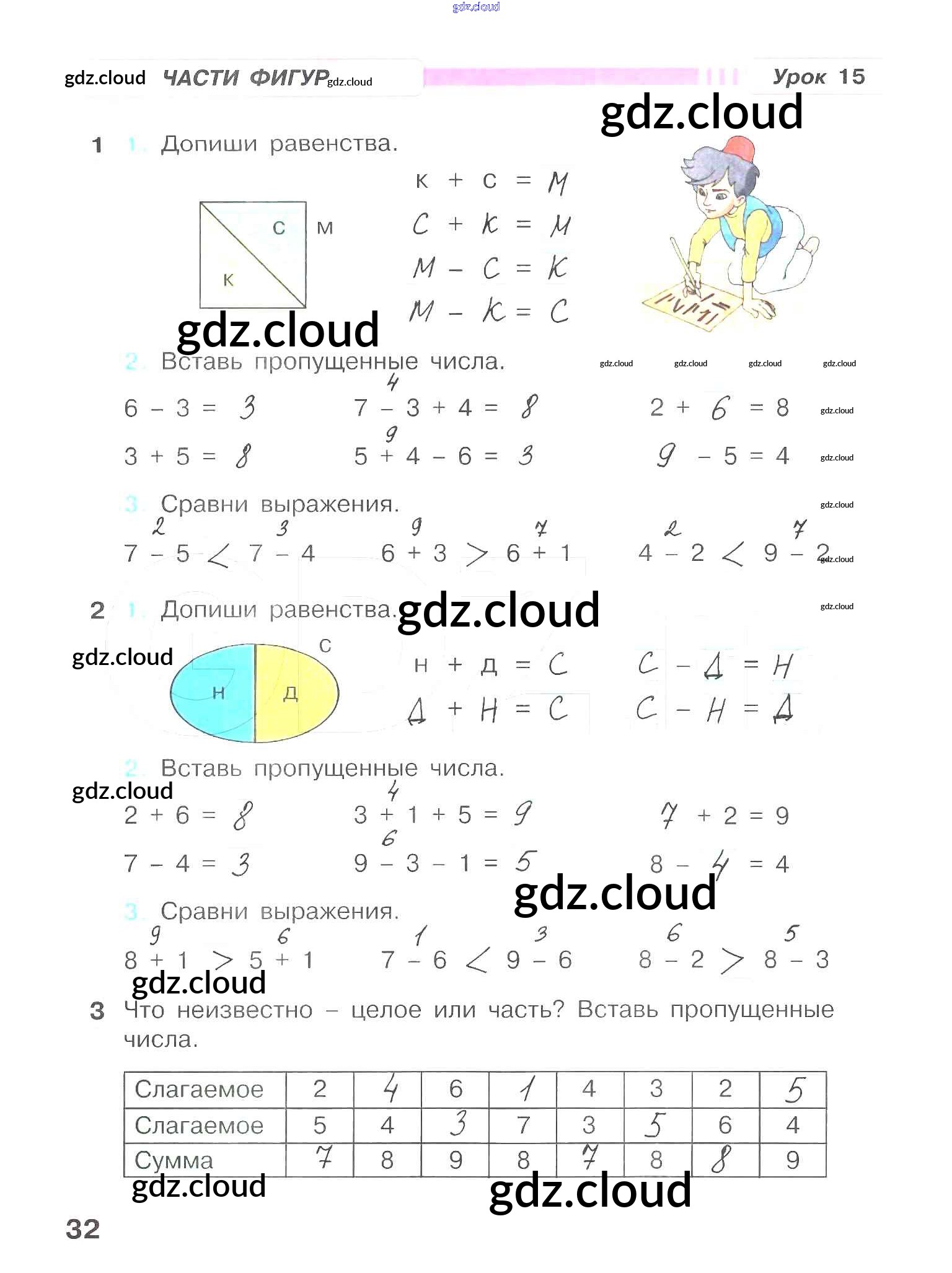 Ответ на задание 32 Рабочая тетрадь Математика за 1 (первый) класс Петерсон Учусь учиться 2016 Часть 1, 2, 3