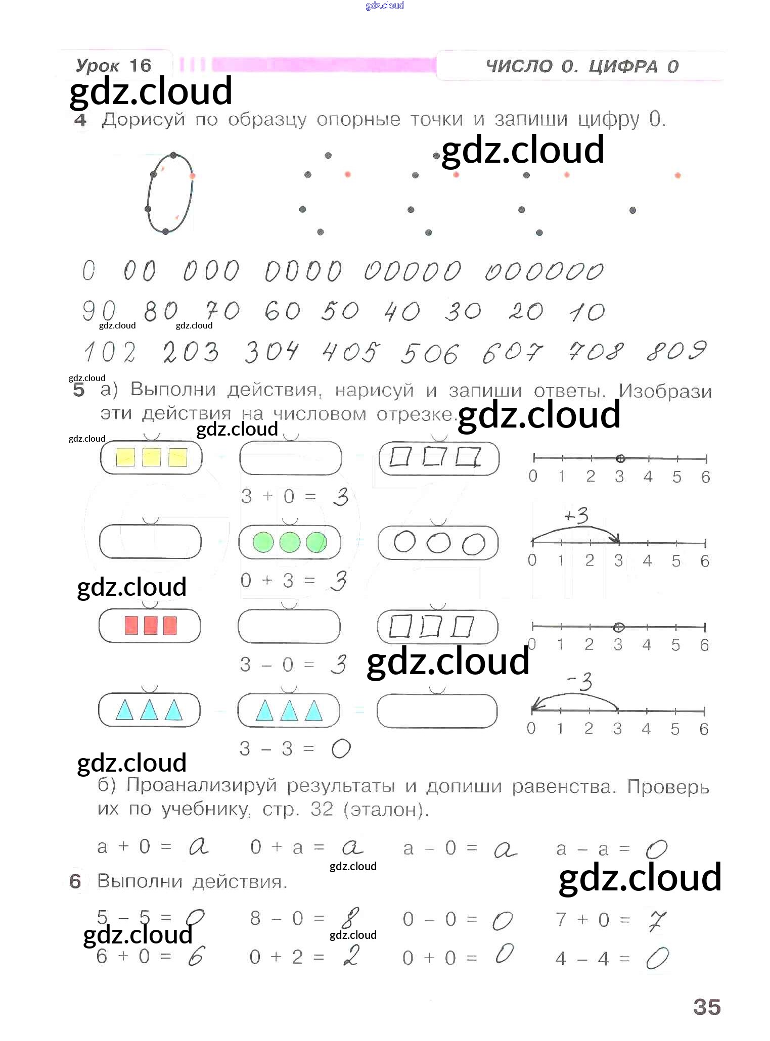 Ответ на задание 35 Рабочая тетрадь Математика за 1 (первый) класс Петерсон Учусь учиться 2016 Часть 1, 2, 3
