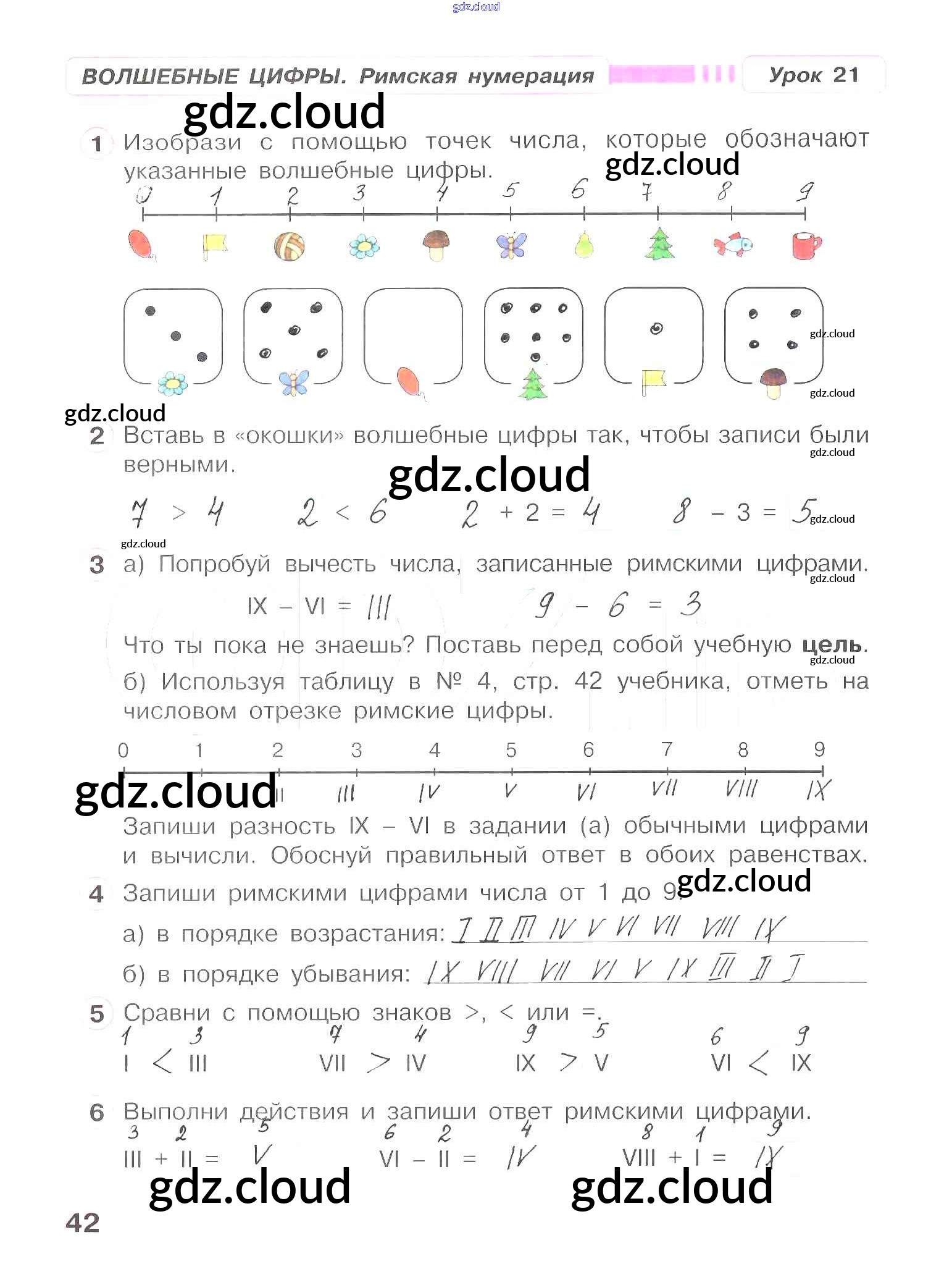 Ответ на задание 42 Рабочая тетрадь Математика за 1 (первый) класс Петерсон Учусь учиться 2016 Часть 1, 2, 3