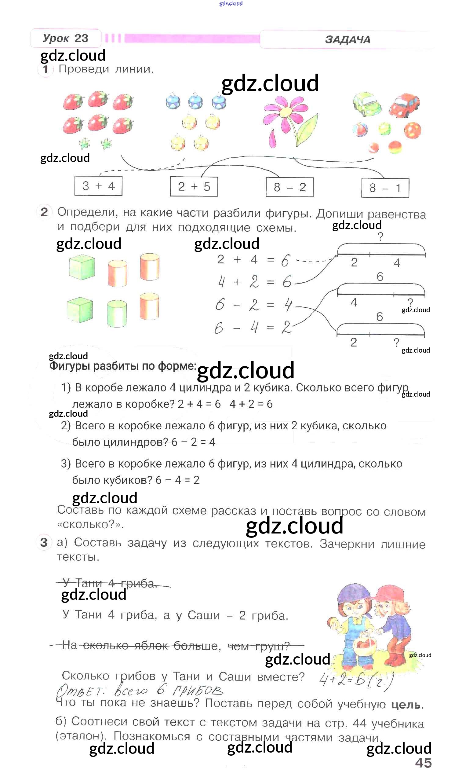 Ответ на задание 45 Рабочая тетрадь Математика за 1 (первый) класс Петерсон Учусь учиться 2016 Часть 1, 2, 3
