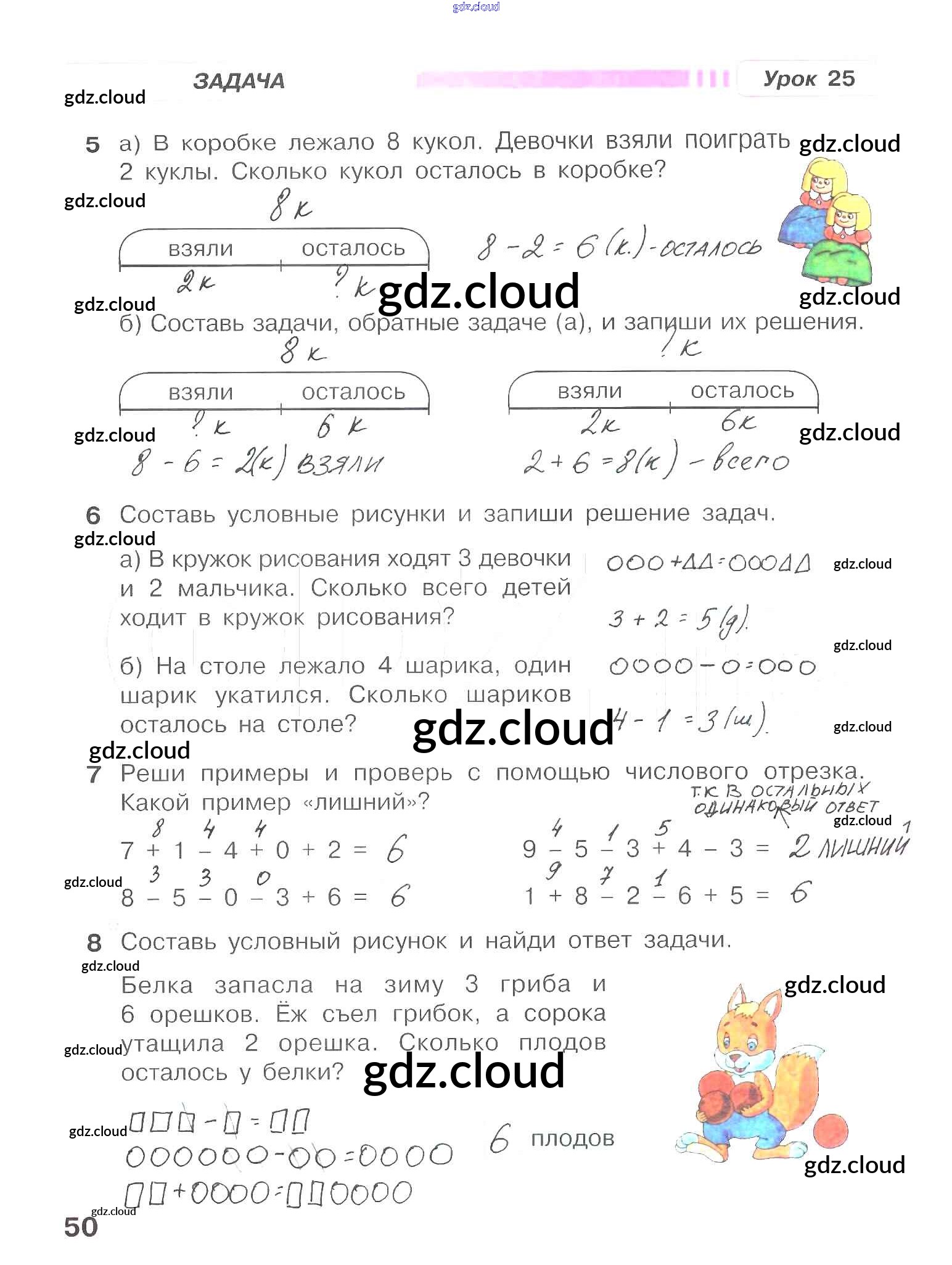 Ответ на задание 50 Рабочая тетрадь Математика за 1 (первый) класс Петерсон Учусь учиться 2016 Часть 1, 2, 3