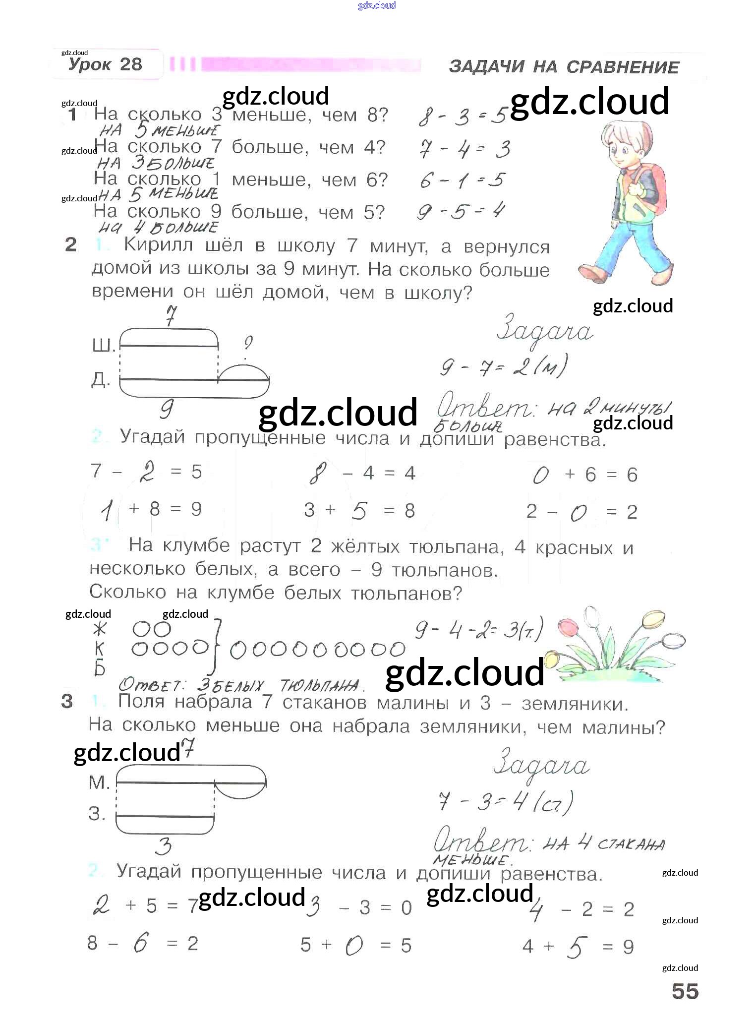 Ответ на задание 55 Рабочая тетрадь Математика за 1 (первый) класс Петерсон Учусь учиться 2016 Часть 1, 2, 3