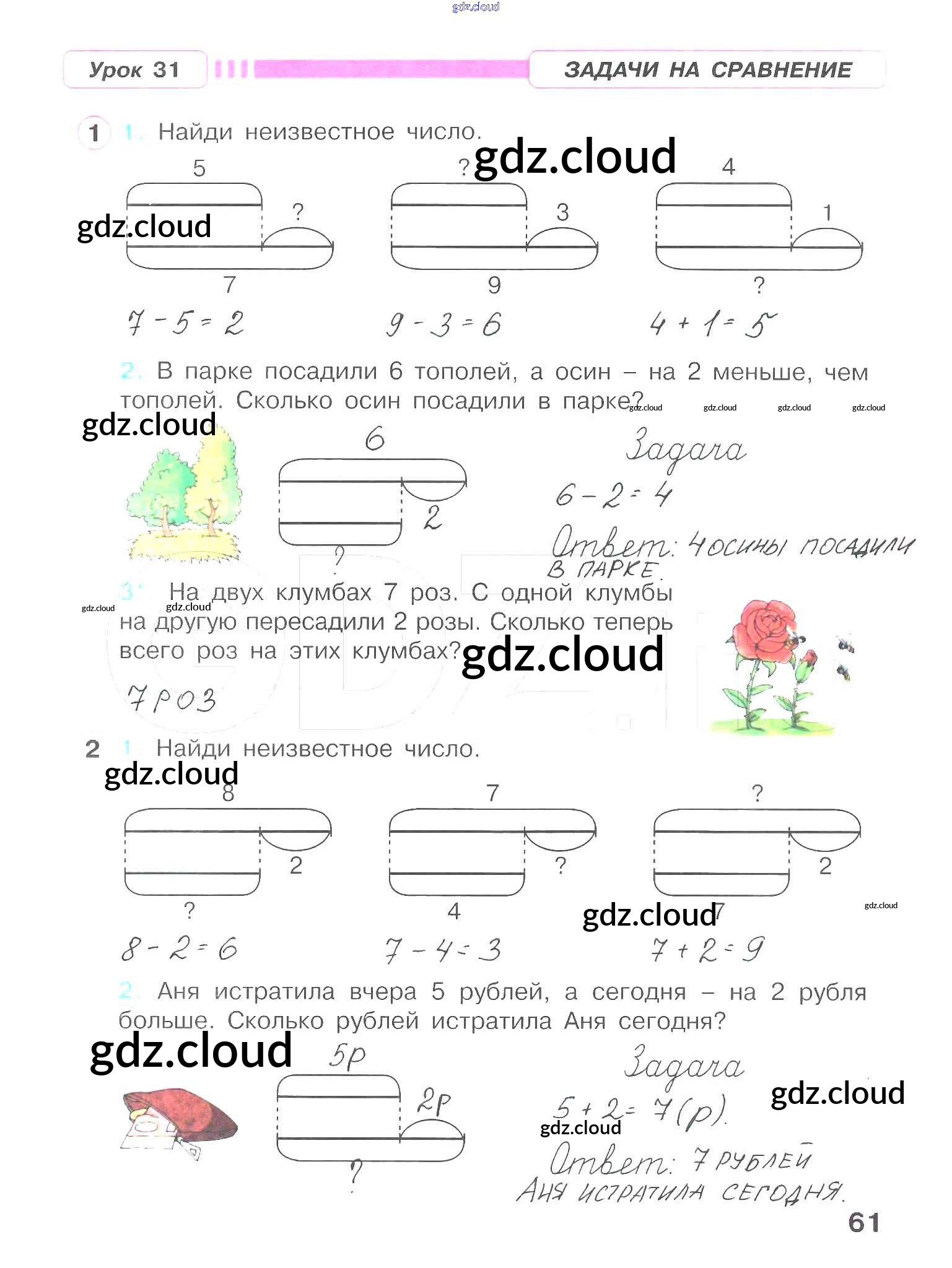 Ответ на задание 61 Рабочая тетрадь Математика за 1 (первый) класс Петерсон Учусь учиться 2016 Часть 1, 2, 3