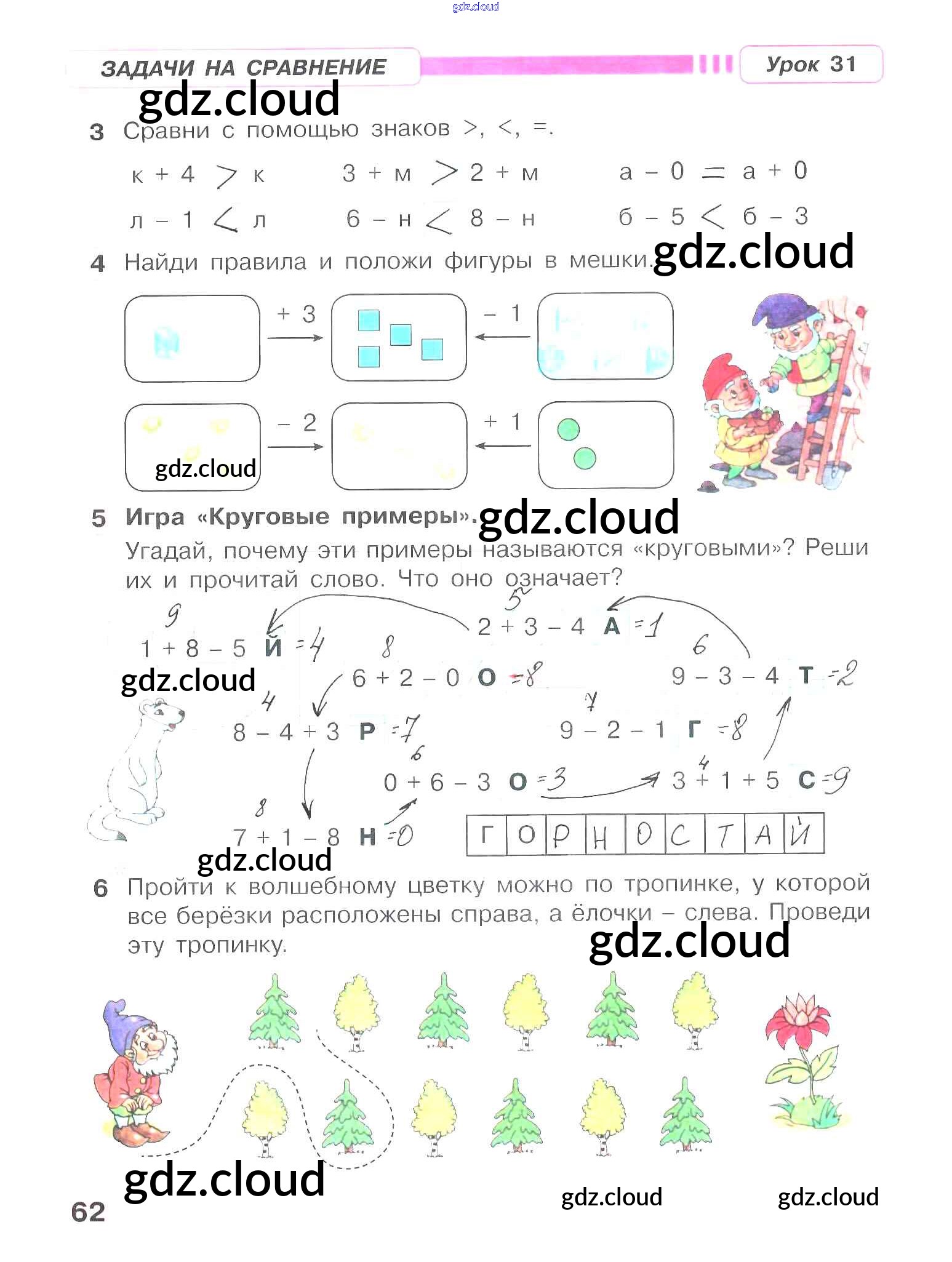 Ответ на задание 62 Рабочая тетрадь Математика за 1 (первый) класс Петерсон Учусь учиться 2016 Часть 1, 2, 3