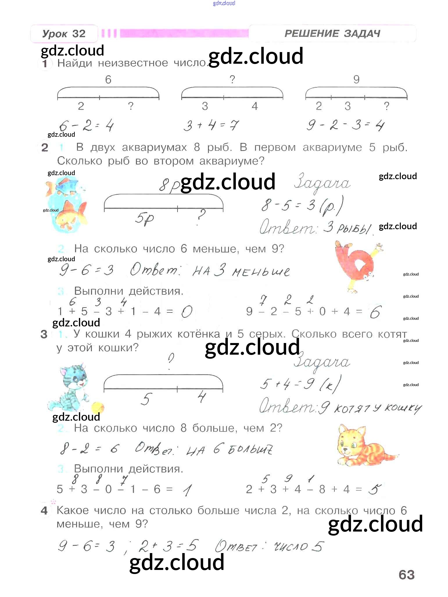 Ответ на задание 63 Рабочая тетрадь Математика за 1 (первый) класс Петерсон Учусь учиться 2016 Часть 1, 2, 3