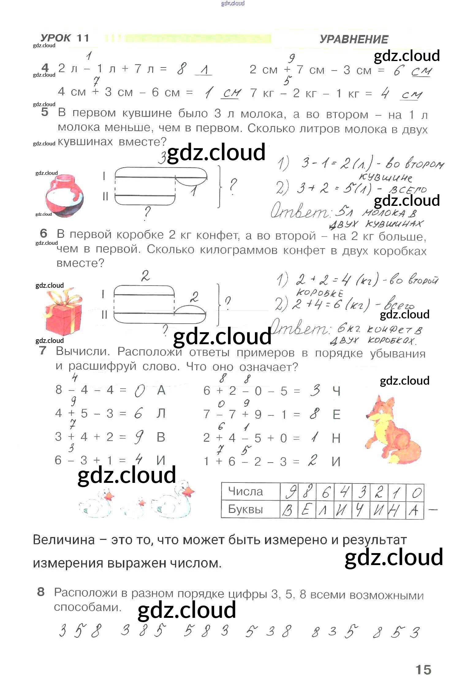 Ответ на задание 15 Рабочая тетрадь Математика за 1 (первый) класс Петерсон Учусь учиться 2016 Часть 1, 2, 3