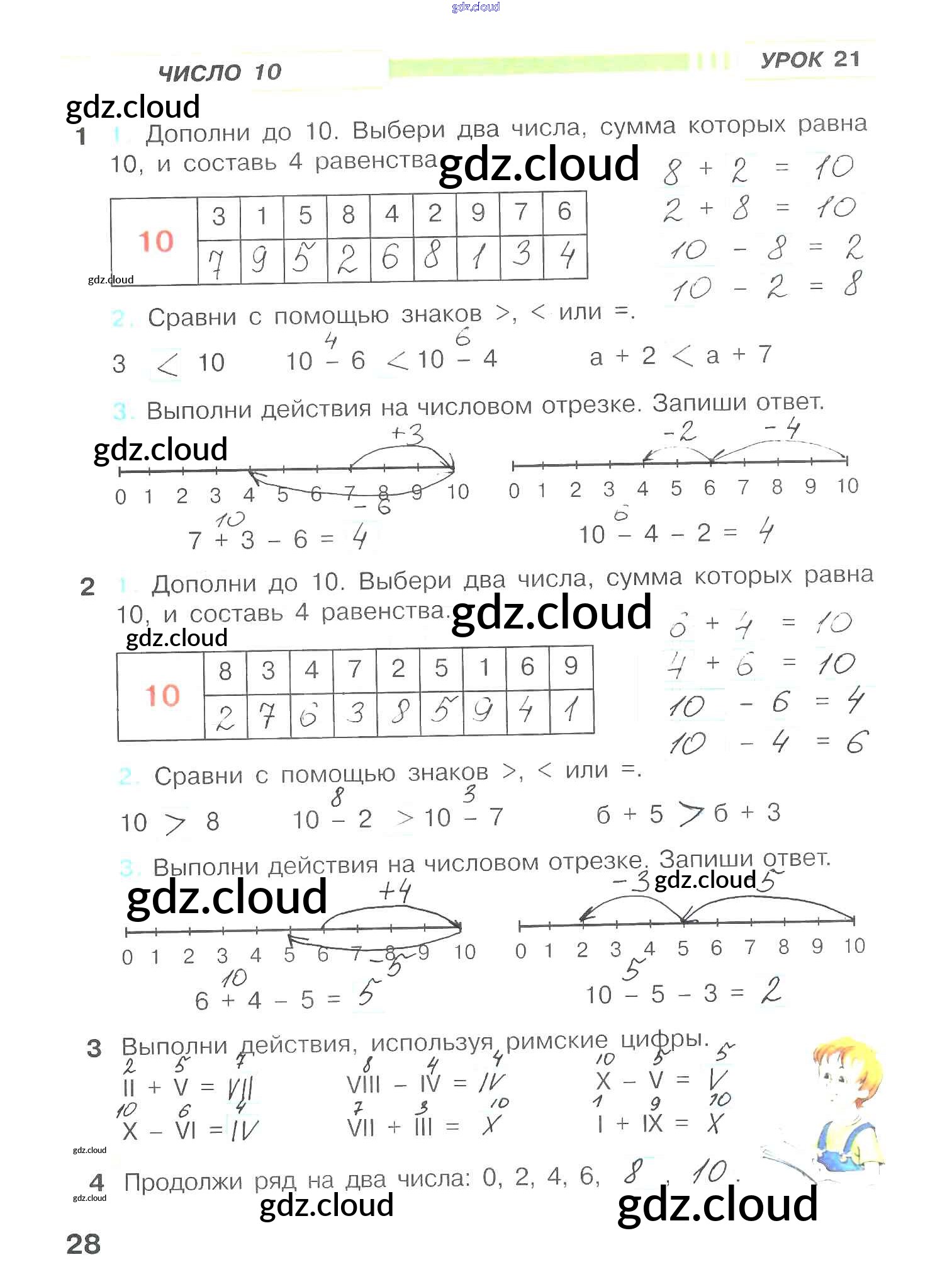 Ответ на задание 28 Рабочая тетрадь Математика за 1 (первый) класс Петерсон Учусь учиться 2016 Часть 1, 2, 3
