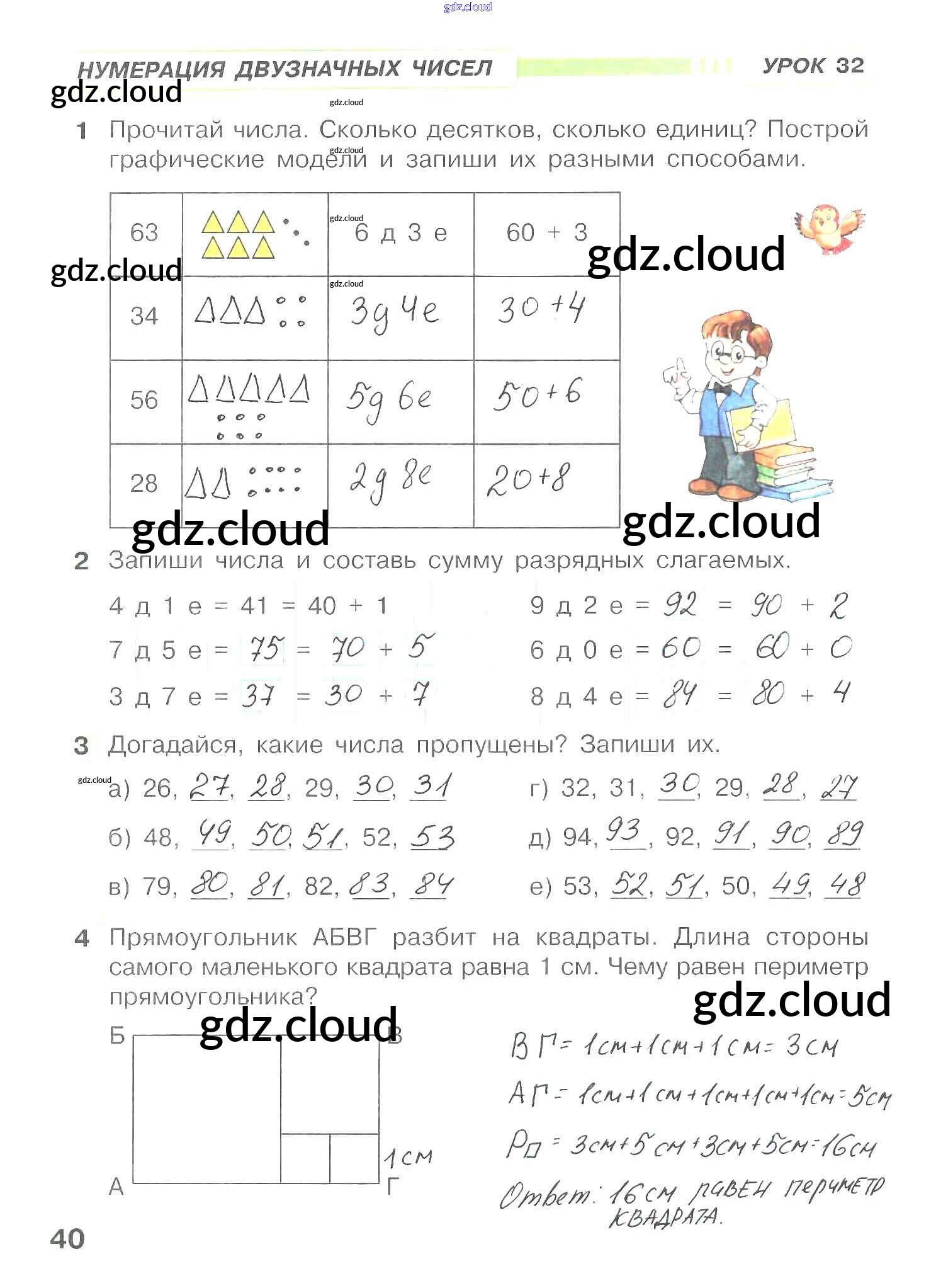 Ответ на задание 40 Рабочая тетрадь Математика за 1 (первый) класс Петерсон Учусь учиться 2016 Часть 1, 2, 3