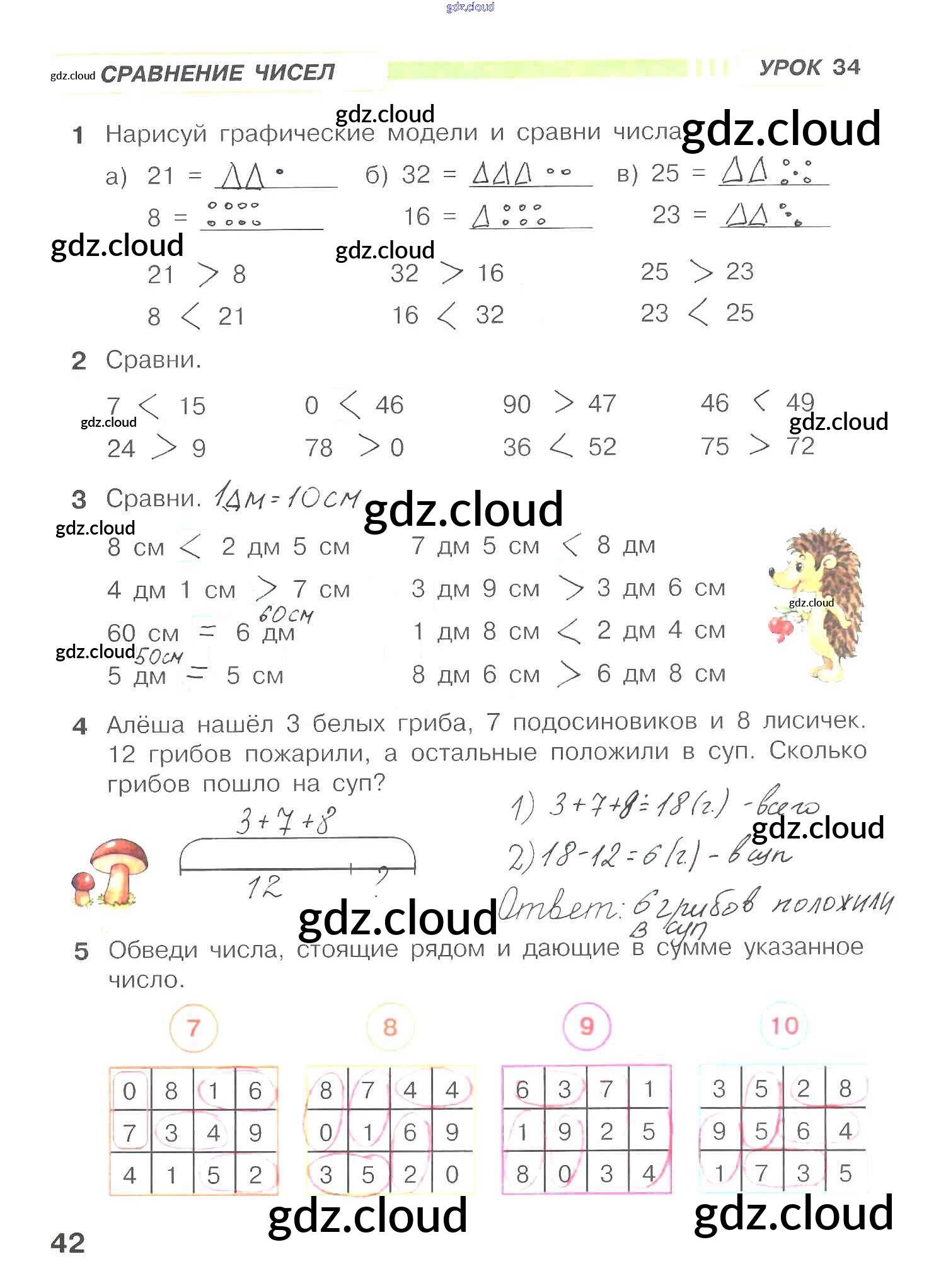 Ответ на задание 42 Рабочая тетрадь Математика за 1 (первый) класс Петерсон Учусь учиться 2016 Часть 1, 2, 3