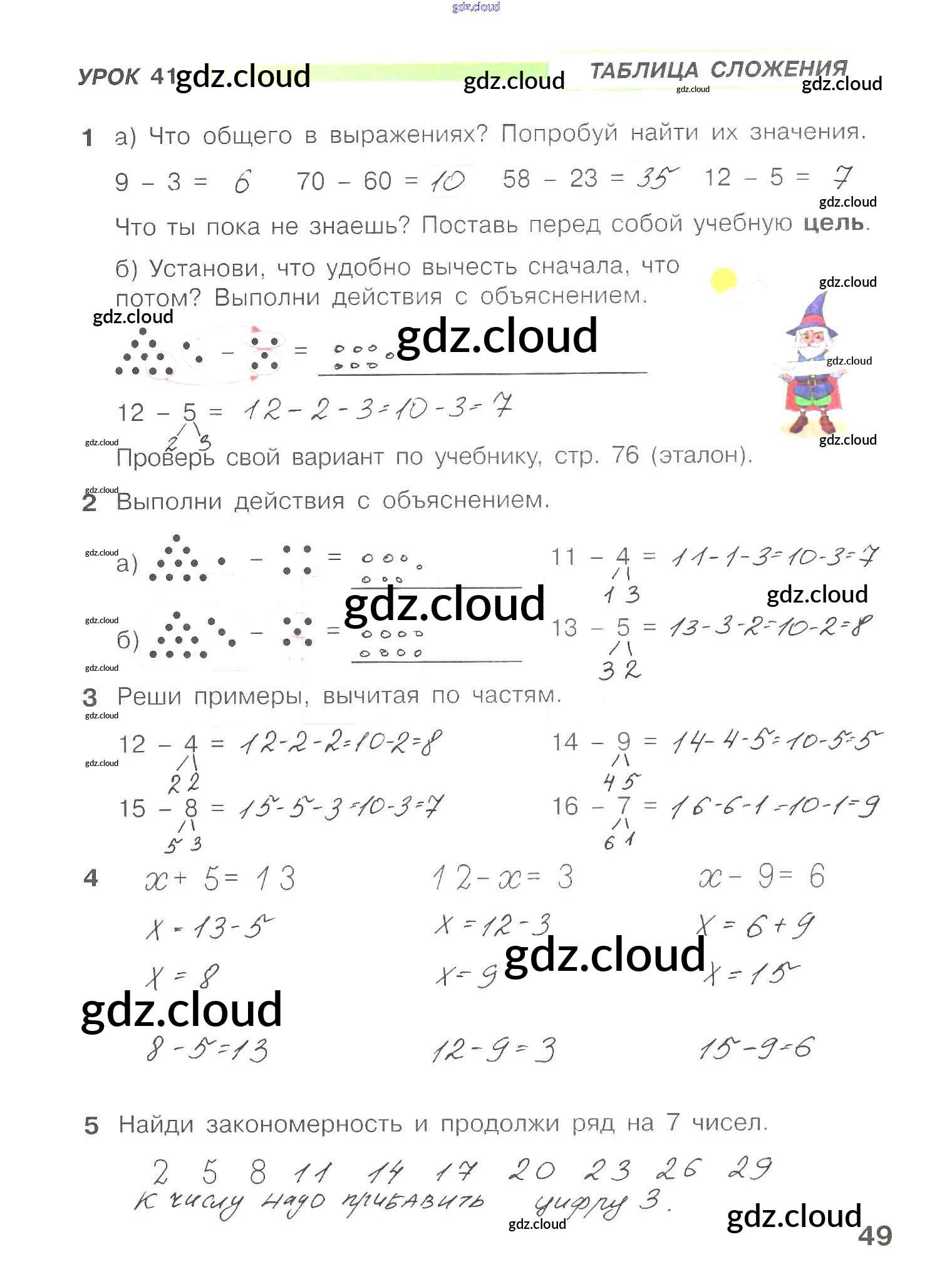 Ответ на задание 49 Рабочая тетрадь Математика за 1 (первый) класс Петерсон Учусь учиться 2016 Часть 1, 2, 3