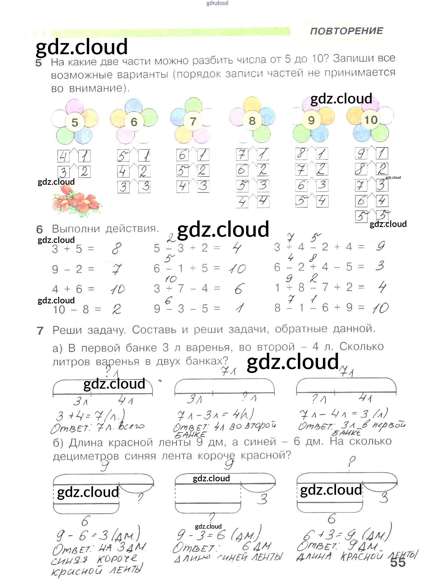 Ответ на задание 55 Рабочая тетрадь Математика за 1 (первый) класс Петерсон Учусь учиться 2016 Часть 1, 2, 3