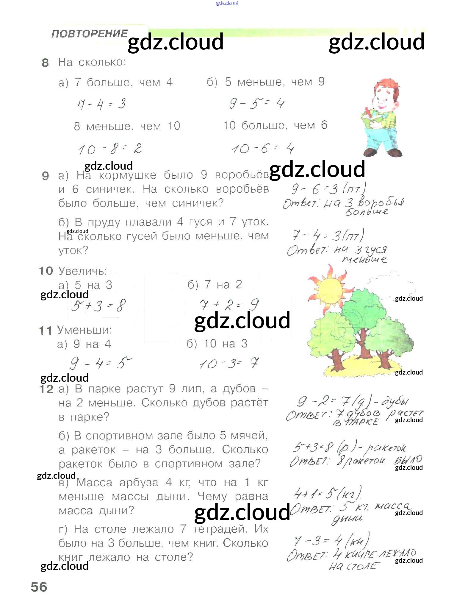Ответ на задание 56 Рабочая тетрадь Математика за 1 (первый) класс Петерсон Учусь учиться 2016 Часть 1, 2, 3