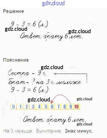 (рис.1) Сестре 9 лет, а брат на 3 года моложе. Сколько лет брату?