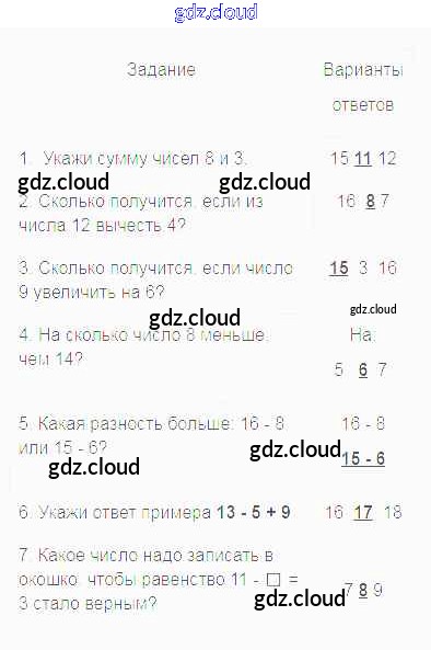 Найди правильный ответ и подчеркни его. Варианты ответов На: 5 6 7 16 - 8 15 - 6 7 8 9