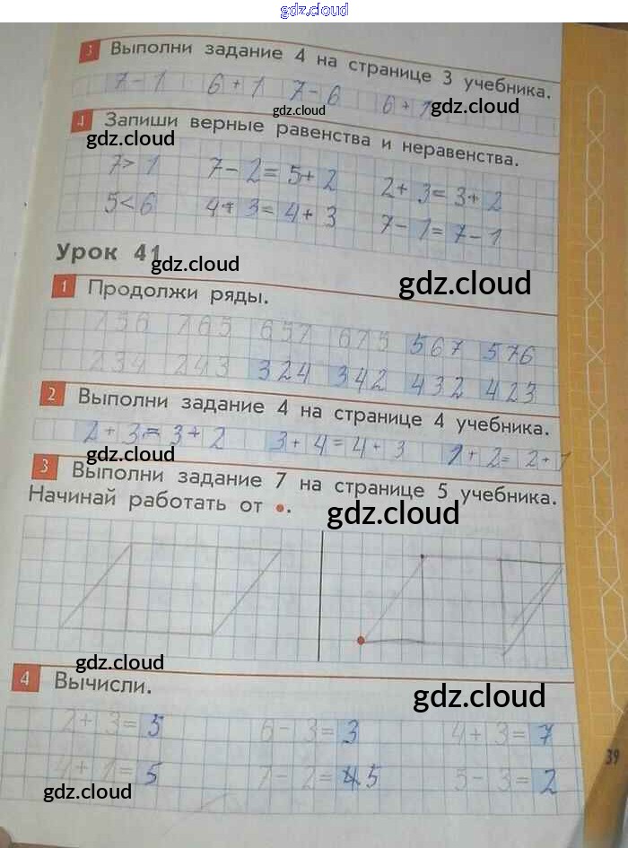 Ответ на задание 39 Рабочая тетрадь Математика за 1 (первый) класс Демидова, Козлова, Тонких Школа 2100 2015 ФГОС онлайн и без номера телефона.