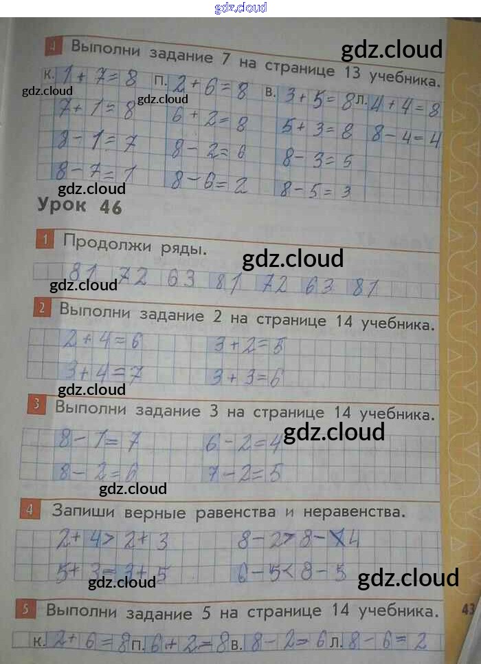 Ответ на задание 43 Рабочая тетрадь Математика за 1 (первый) класс Демидова, Козлова, Тонких Школа 2100 2015 ФГОС онлайн и без номера телефона.