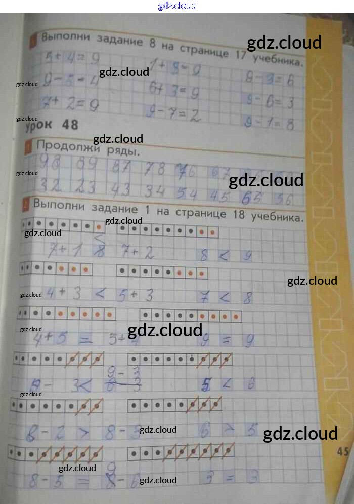 Ответ на задание 45 Рабочая тетрадь Математика за 1 (первый) класс Демидова, Козлова, Тонких Школа 2100 2015 ФГОС онлайн и без номера телефона.