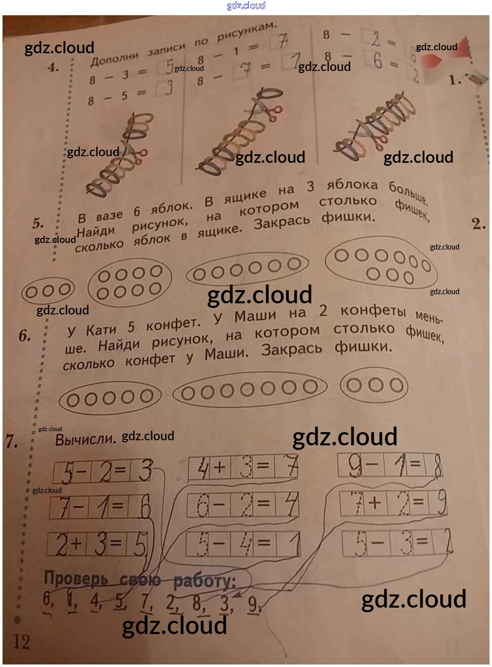 Ответ на задание 12 Рабочая тетрадь Математика за 1 (первый) класс Кочурова Начальная школа XXI века 2020