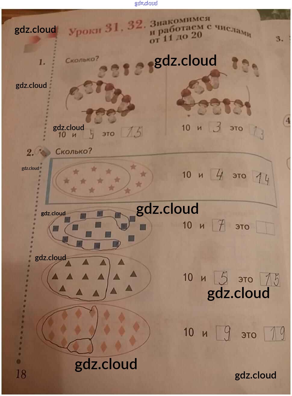 Ответ на задание 18 Рабочая тетрадь Математика за 1 (первый) класс Кочурова Начальная школа XXI века 2020